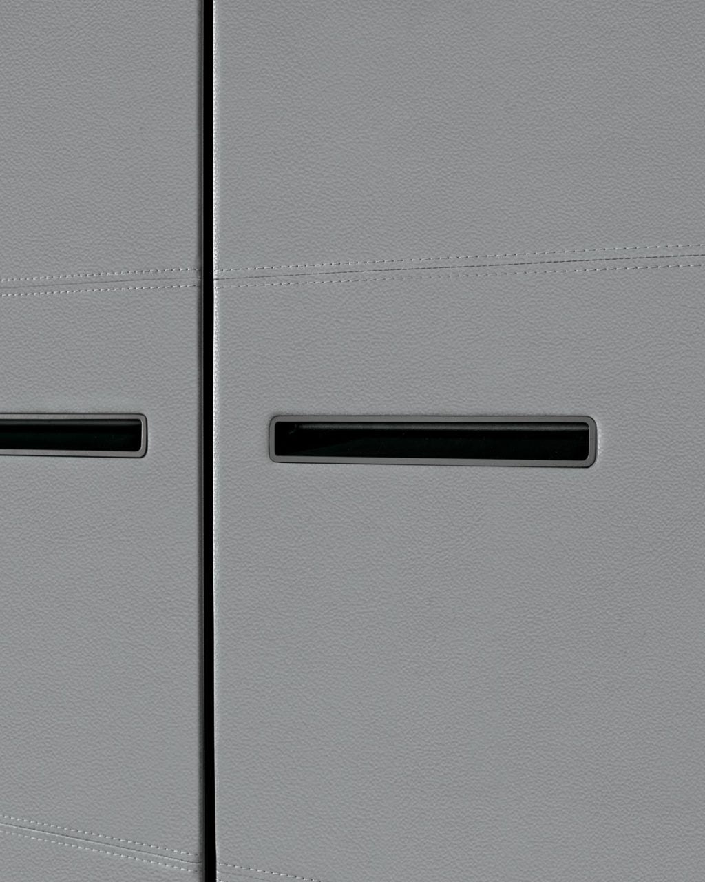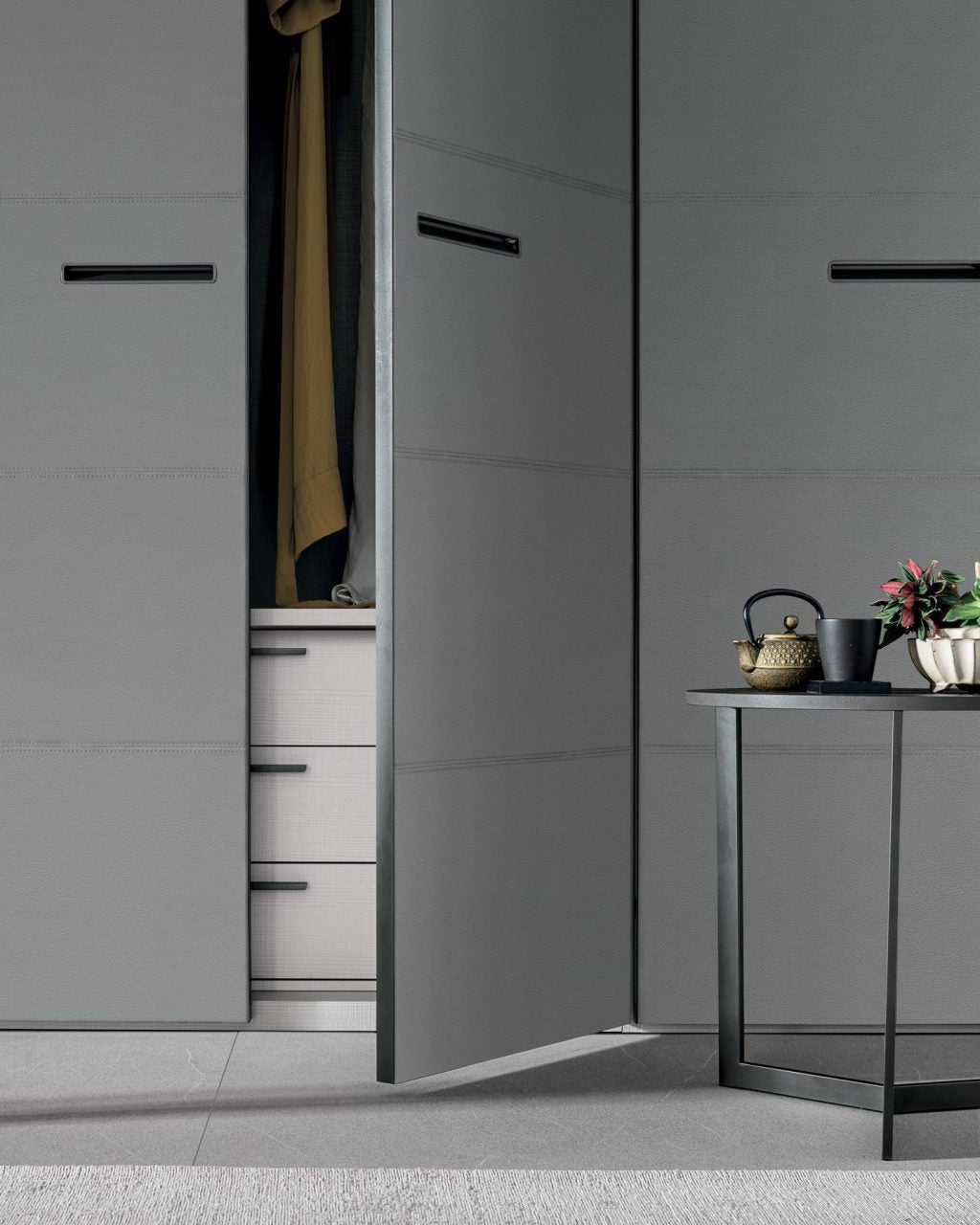 Come un abito su misura, pelle, ecopelle ed econabuk rivestono la superficie creando un effetto sofisticato e materico, perfetto per ambienti raffinati e contemporanei.
