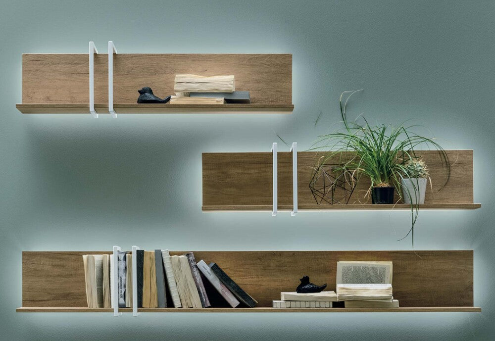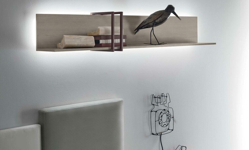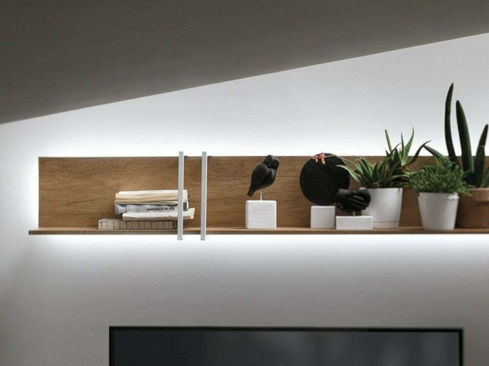 Realizzata in legno e metallo, la mensola Ring unisce funzionalità ed estetica, ed è ulteriormente valorizzata dalla possibilità di aggiungere la retroilluminazione a LED, che aumenta la profondità visiva e dona allo spazio un look moderno e scenografico. L’illuminazione è disponibile con o senza alimentatore (60 W) e può essere gestita da telecomando opzionale.