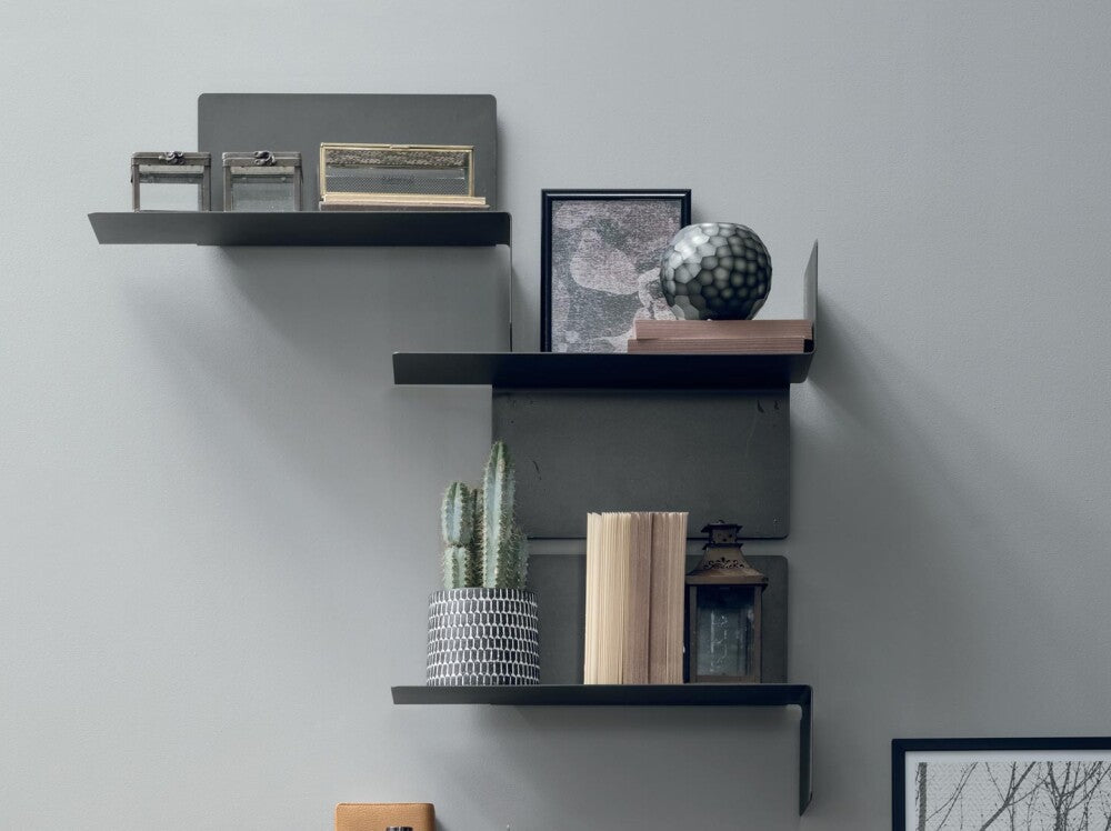 La mensola Snake di Tomasella è un complemento dal design moderno e originale, interamente realizzato in metallo e capace di impreziosire qualsiasi ambiente. La sua forma dinamica le permette di essere montata in due orientamenti diversi e, quando il lato ripiegato è rivolto verso l’alto, diventa anche un pratico fermalibri.