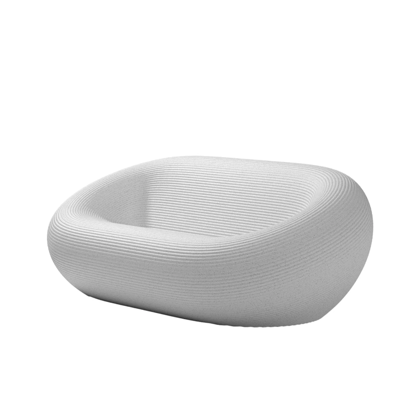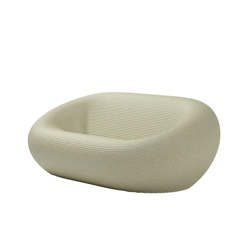 Il design del divano combina un profilo lineare nella parte centrale con estremità perfettamente circolari, creando una forma armoniosa e avvolgente che può accogliere 2/3 persone. La struttura integra due canali per il drenaggio dell’acqua, pensati per agevolare l’uso outdoor.