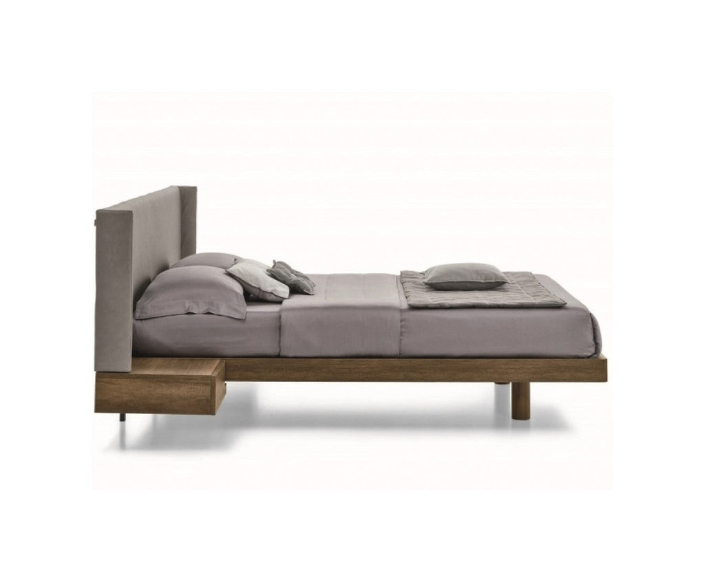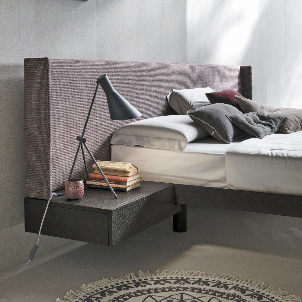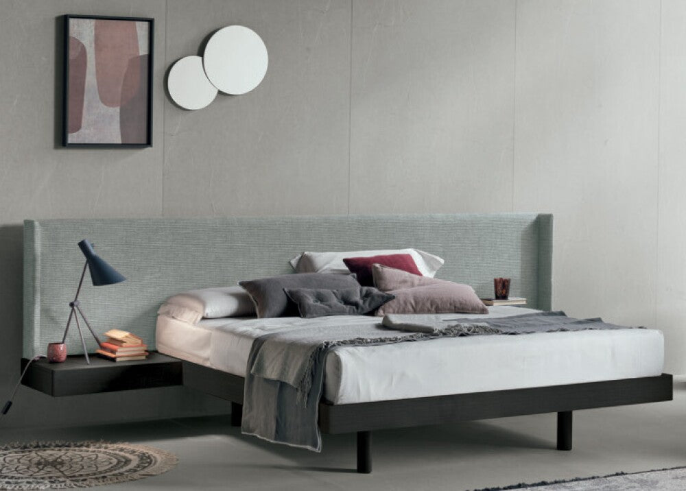 Il letto matrimoniale Fusion di Tomasella è una soluzione d’arredo innovativa e scenografica, che fonde in un unico elemento testiera, giroletto e comodini. La grande testiera imbottita e sfoderabile, leggermente curvata alle estremità, crea un raffinato “angolo del riposo” e si estende fino a inglobare i comodini con cassetto integrato, per una proposta che unisce stile contemporaneo e funzionalità.
