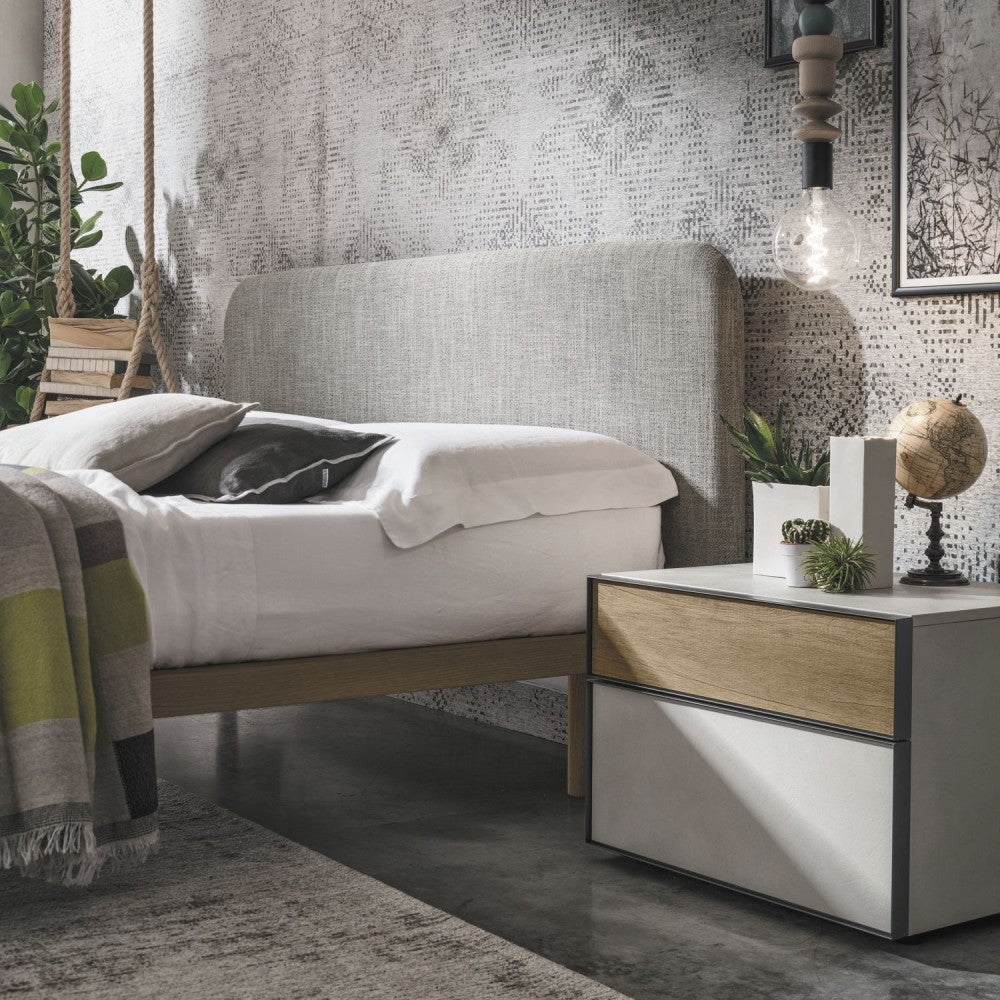 La struttura, sottile e discreta, è personalizzabile con un’ampia gamma di finiture che includono essenze legnose pregiate e laccati opachi, mentre la testiera può essere arricchita da rivestimenti in tessuto, pelle, ecopelle o lino, disponibili in innumerevoli varianti cromatiche.