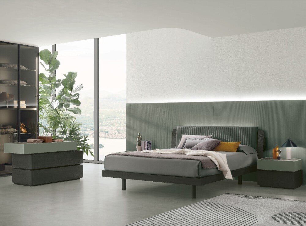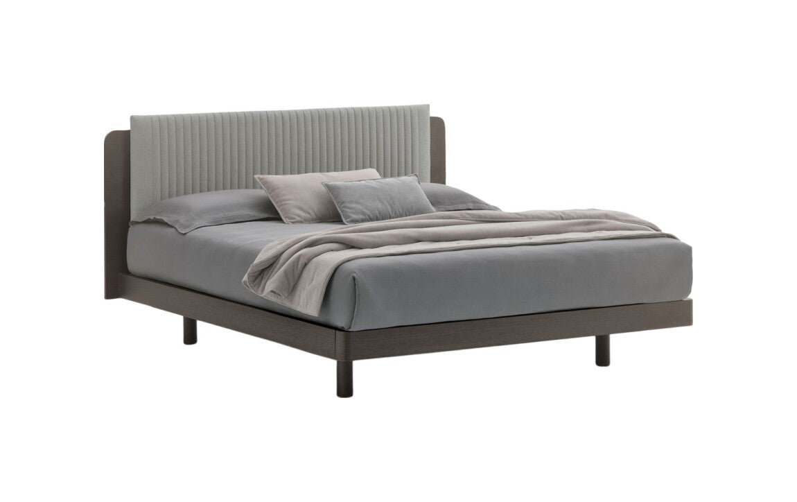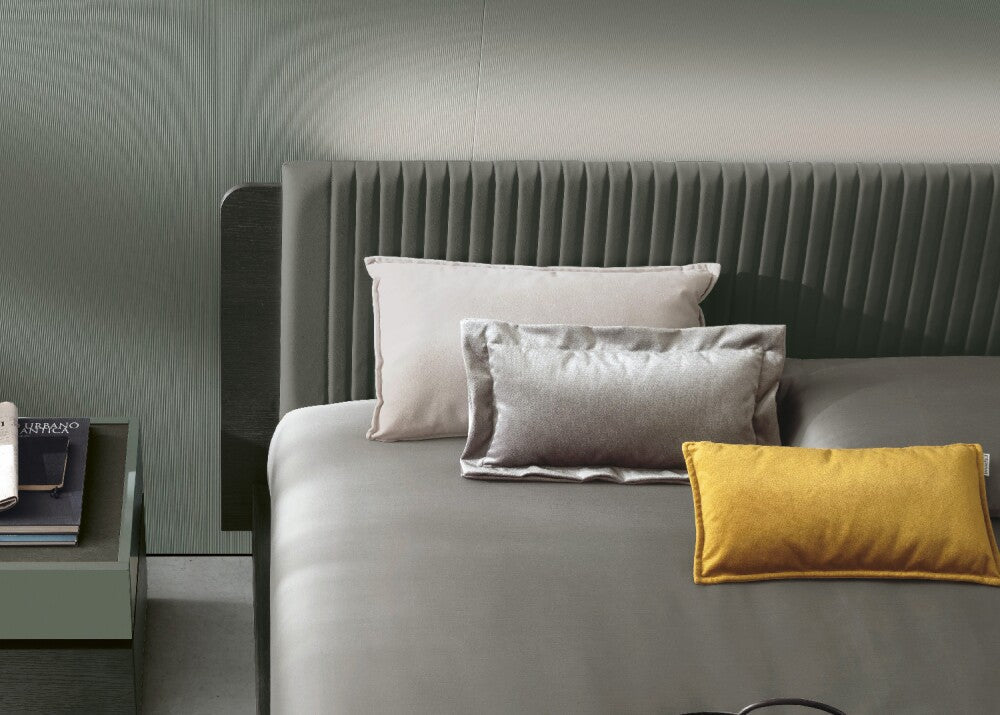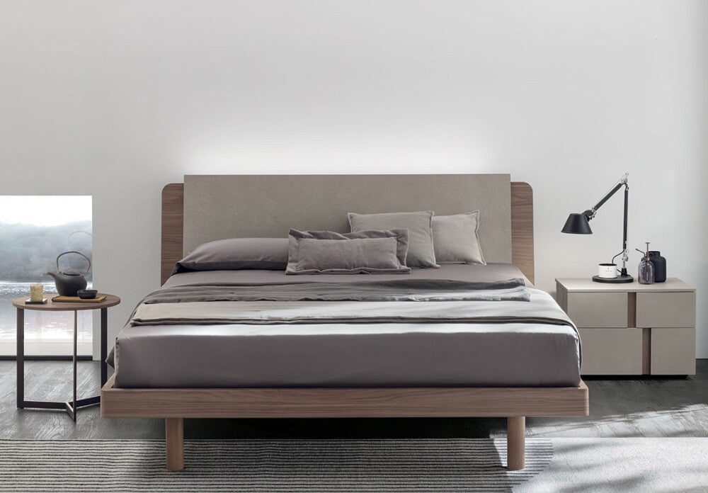 Entrambe le versioni del letto Roxy sono personalizzabili sia nella finitura della struttura (materiche effetto legno, cemento, tessuto, calce o numerose laccature opache/poro aperto), sia nella finitura della testiera (tessuto, ecopelle o lino in molteplici colori e sfumature di tendenza).