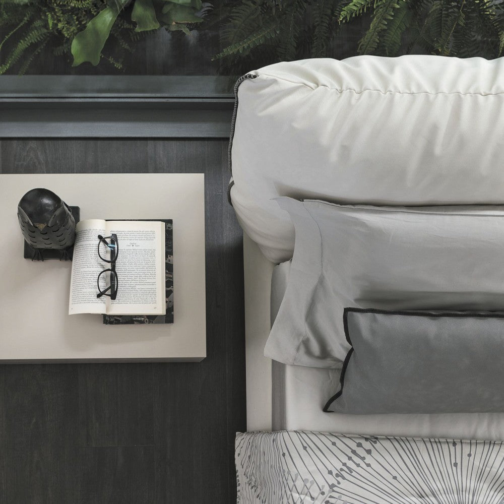 Il letto Sogno di Tomasella è un modello imbottito dal design ricercato e dalle dimensioni generose, pensato per diventare il vero protagonista della zona notte. La grande testiera è composta da morbidi cuscini imbottiti (uno nei formati singolo e piazza e mezza, due nei matrimoniali) che offrono il massimo comfort durante i momenti di relax o lettura.