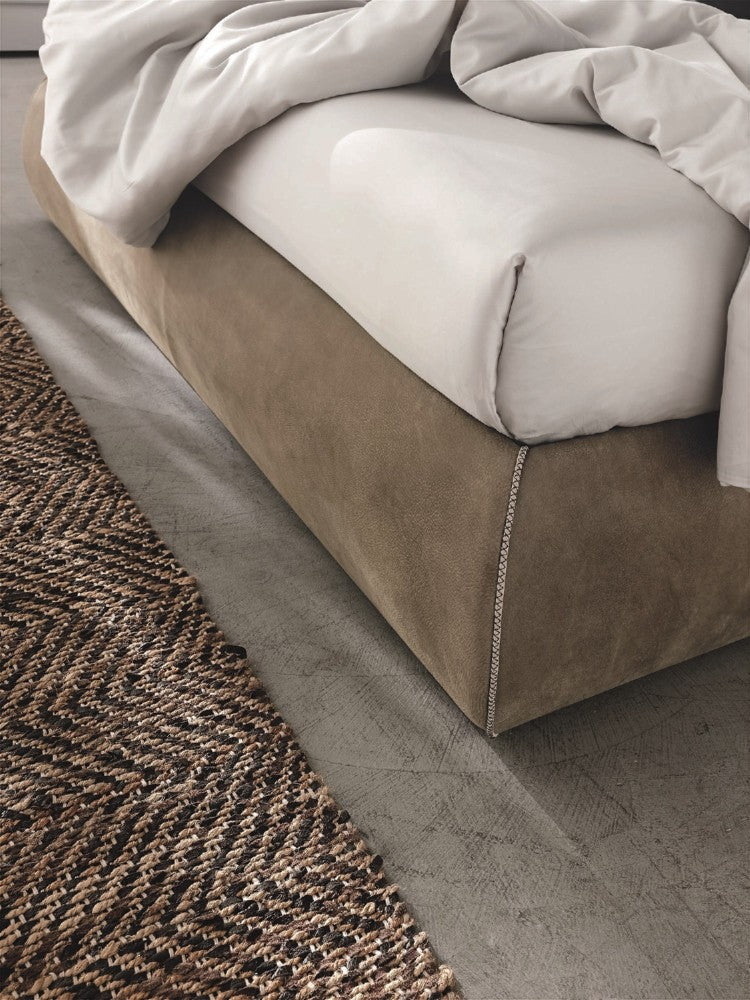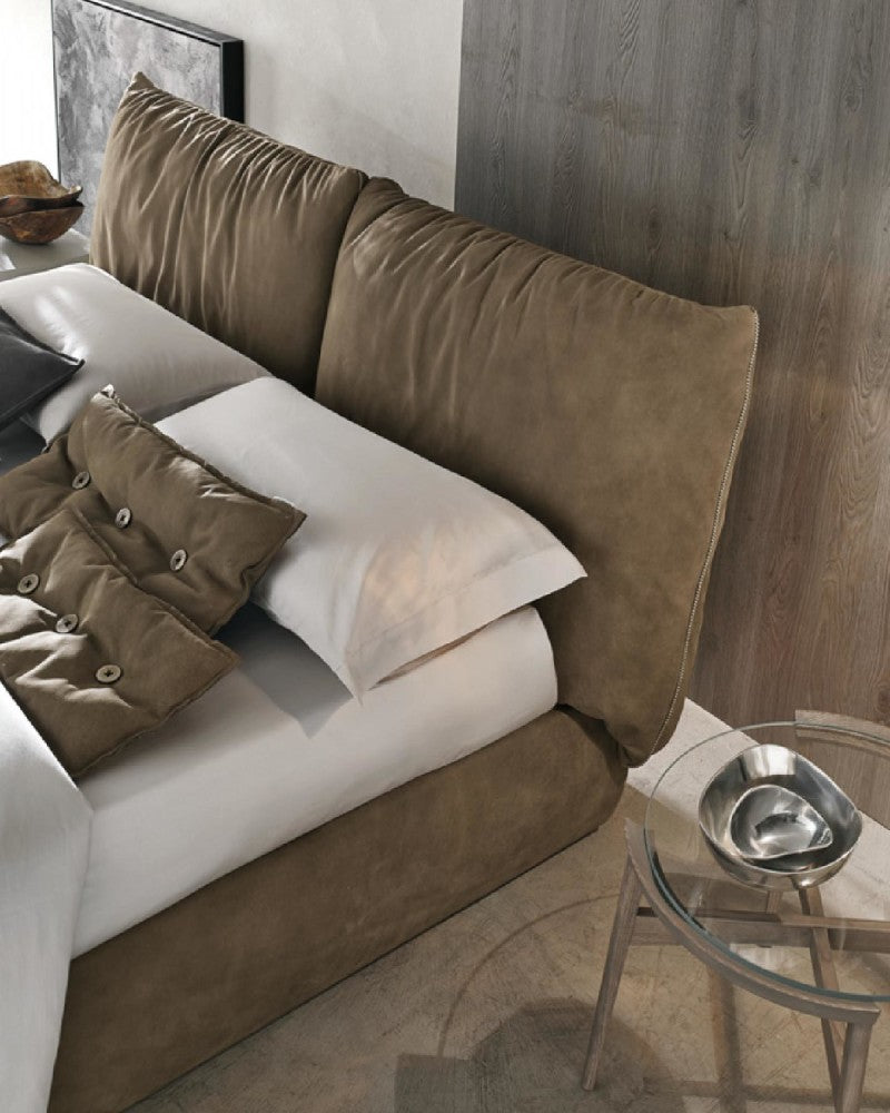 Il giroletto con angoli arrotondati non solo valorizza le linee morbide e sinuose del letto, ma garantisce anche funzionalità e sicurezza, rendendolo adatto a tutti gli ambienti. A impreziosire il design contribuiscono le cuciture ribattute a contrasto, disponibili in cordino chiaro o scuro, che sottolineano i volumi e l’eleganza della struttura. Perfettamente rifinito anche nella parte posteriore, il letto Sogno può essere collocato anche al centro stanza.