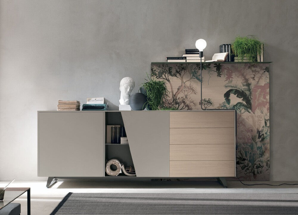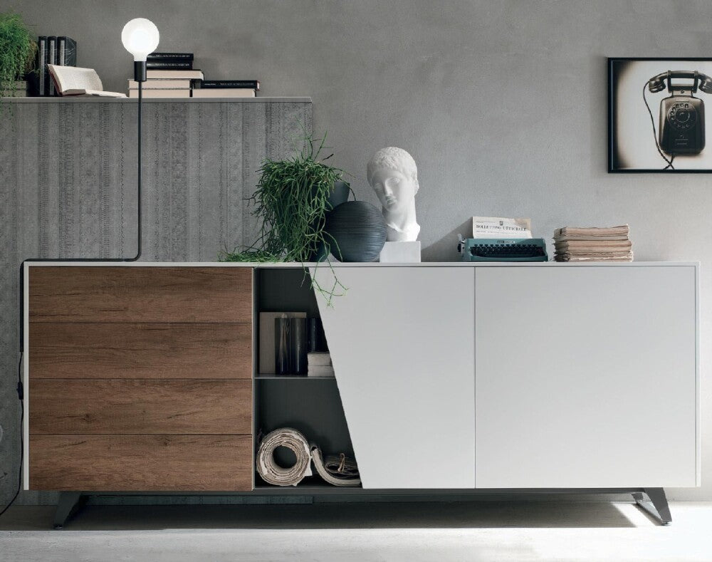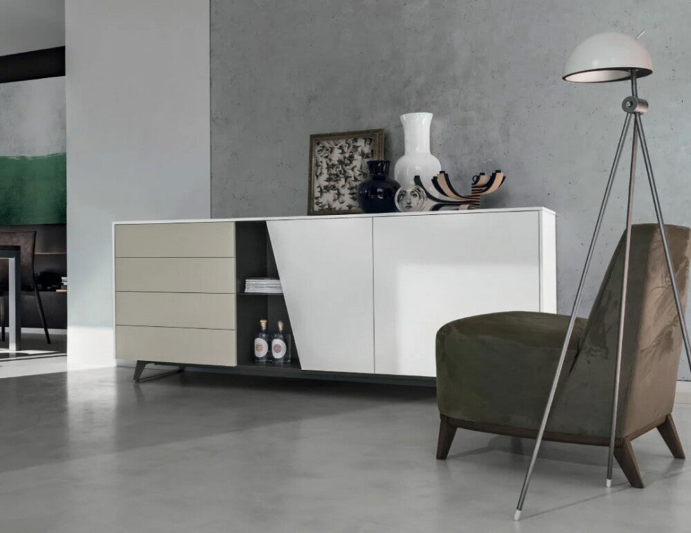 La madia Diagonal di Tomasella è una collezione di contenitori dal design moderno e sofisticato, in cui il minimalismo delle linee diagonali incontra la qualità dei materiali e la cura artigianale tipica del brand.