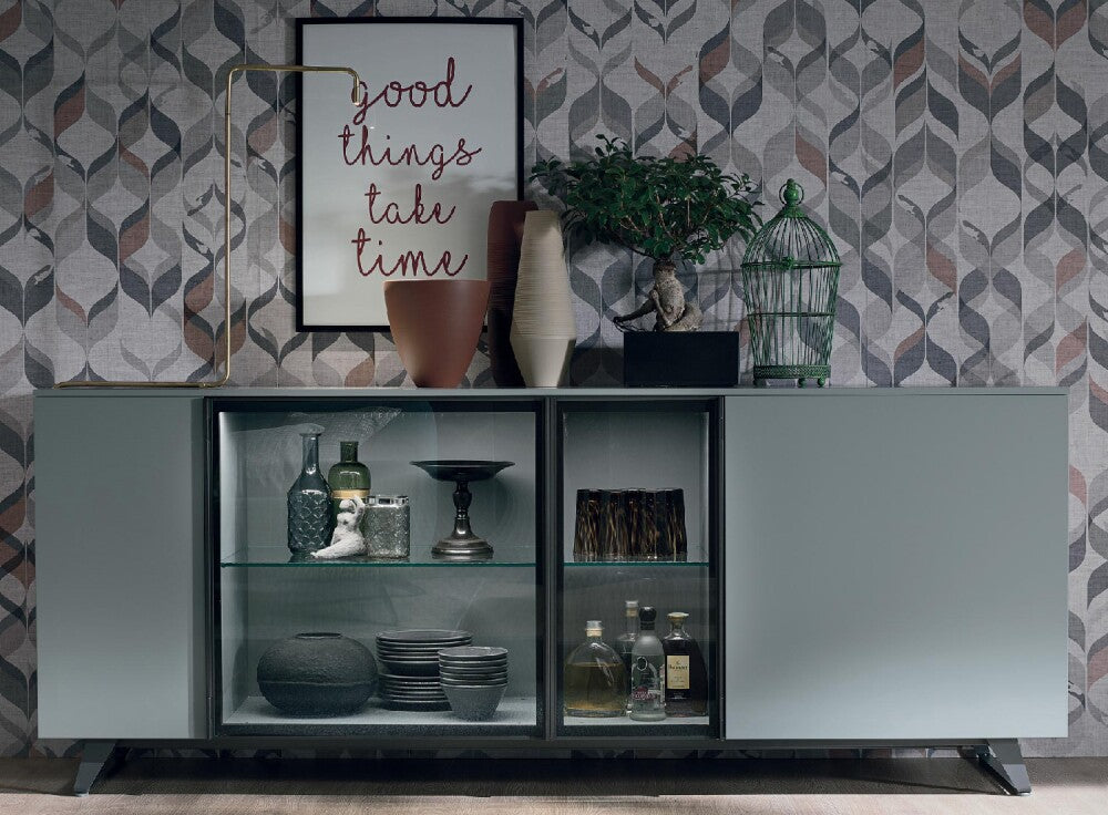 Metropolis A03: due ante in vetro, due cassetti, un cassettone e un’anta in legno