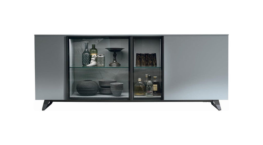 Credenza Metropolis 2 (h 121,5/157,5 cm): due ante in vetro e cassettone inferiore (larghezze 72, 108, 144 cm)