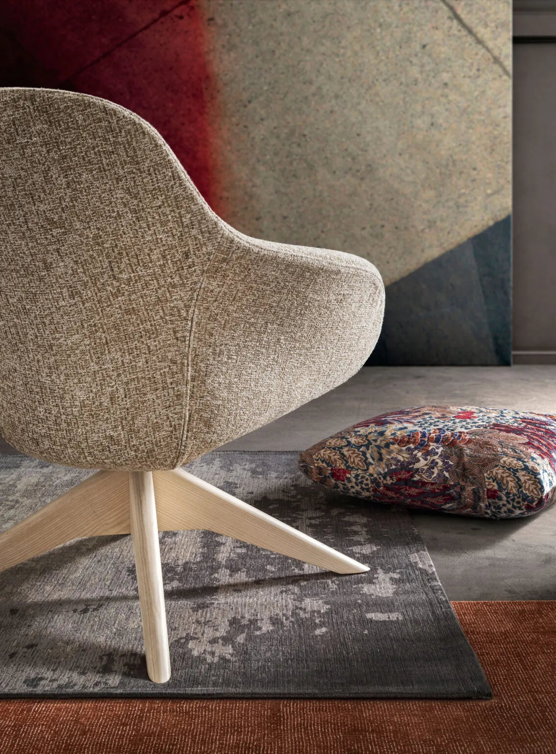 Poltrone, pouf e poggiapiedi dal design sofisticato offrono una seduta accogliente e rilassante, mentre le proporzioni equilibrate e i dettagli curati valorizzano ogni ambiente con un’eleganza discreta ma decisa.