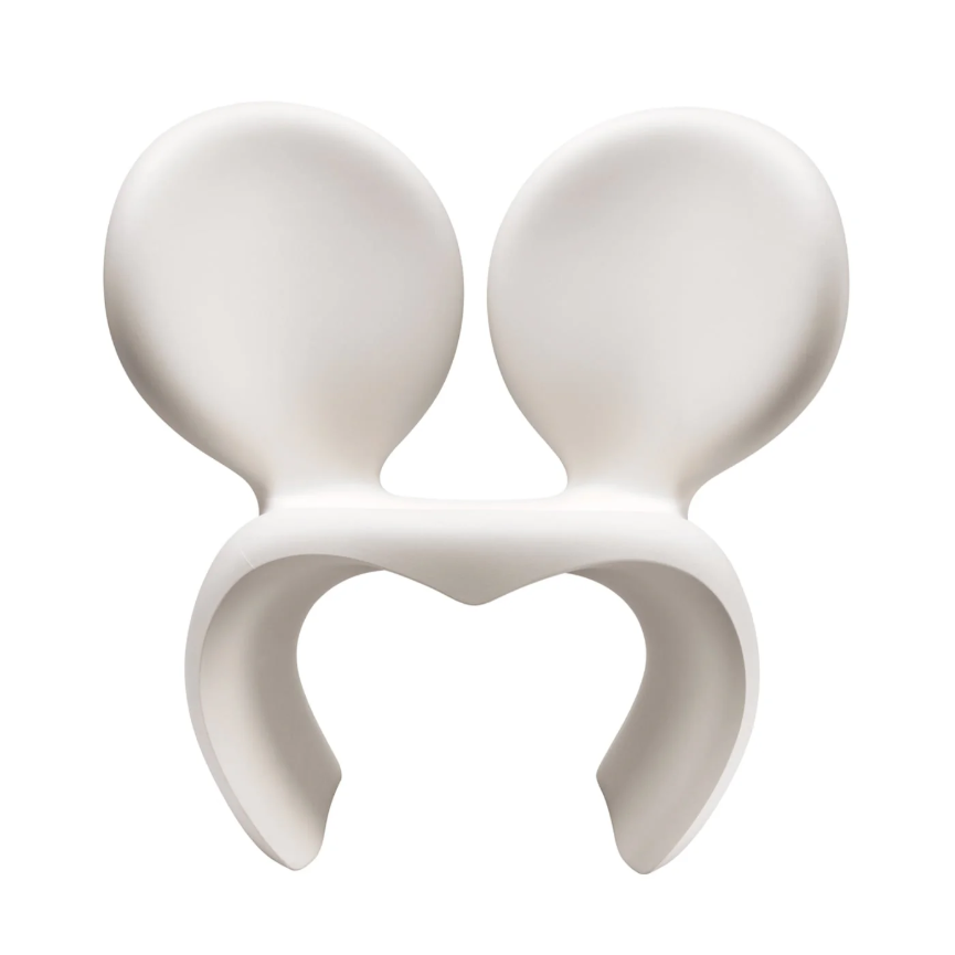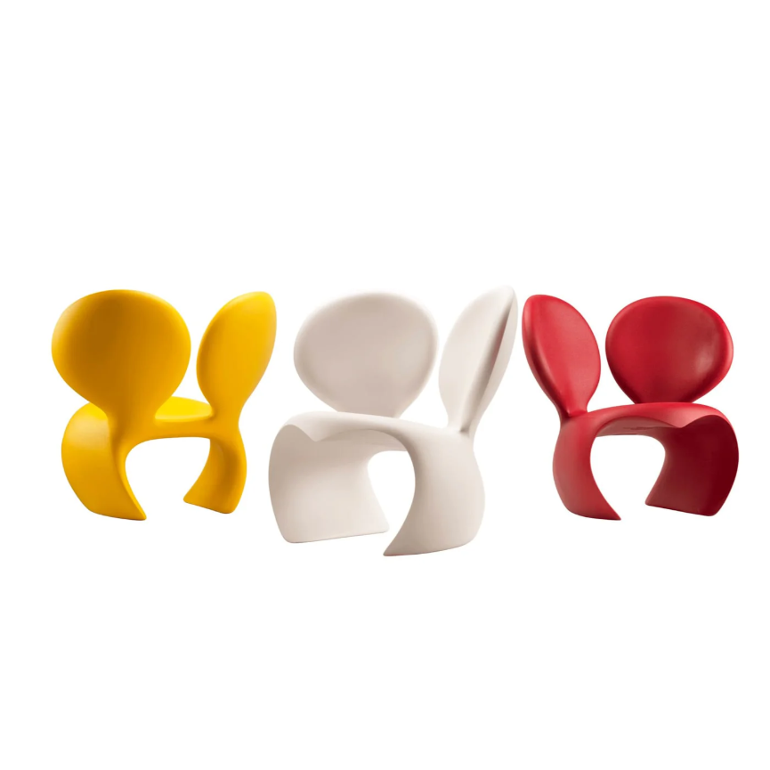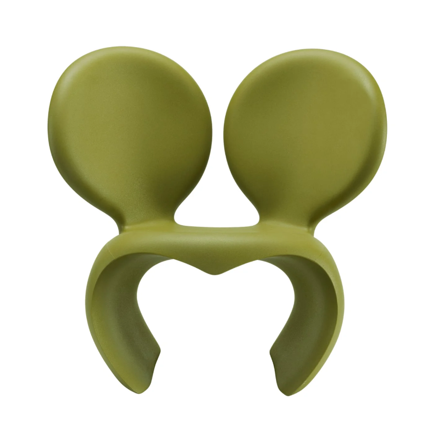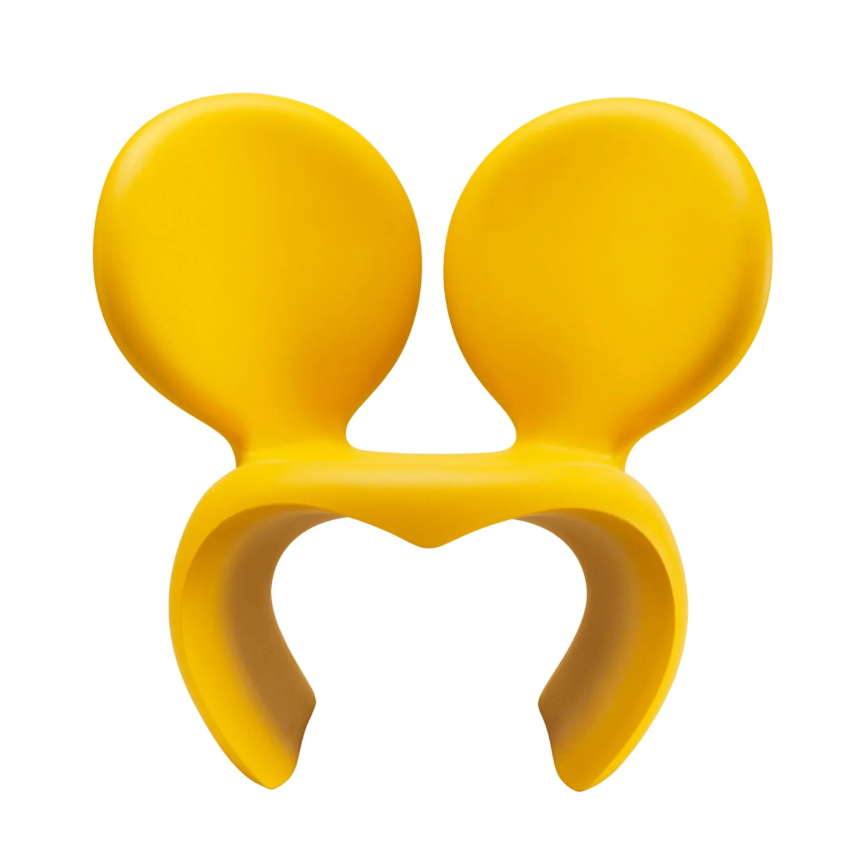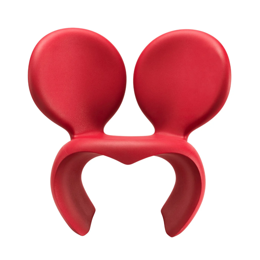La Poltrona Don't f**k with the mouse di Qeeboo è una delle creazioni più iconiche di Ron Arad, progettata per la prima volta nel 1988 e divenuta nel tempo un simbolo del design radicale. Dopo numerose reinterpretazioni, Qeeboo la ripropone oggi come prodotto industriale in polietilene riciclabile, adatto sia per interni che per esterni.