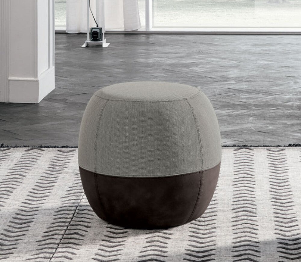 Realizzato con materiali di alta qualità, il pouf Barrique presenta una seduta personalizzabile in una delle numerose varianti di tessuto disponibili a campionario Tomasella. La parte inferiore, invece, è rivestita in pregiata ecopelle, proposta in diverse finiture, per creare accostamenti raffinati e di grande impatto estetico.