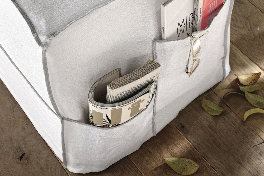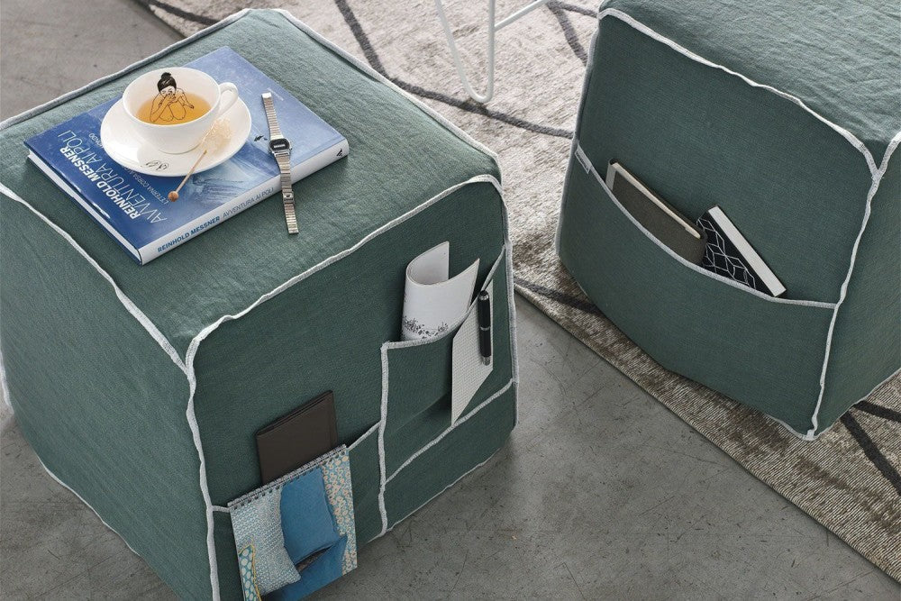 Versatile e creativo, questo pouf multifunzionale può essere utilizzato come prolungamento del divano, poggiapiedi, seduta aggiuntiva, piano d’appoggio o addirittura come coffee table, donando sempre un carattere distintivo e accogliente agli spazi in cui è inserito — dal living alla camera da letto.