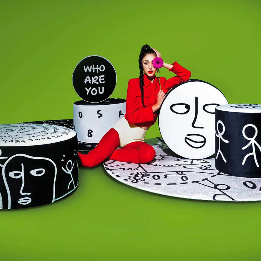 Il Pouf Eclipse Etching L di Qeeboo fa parte della collezione Linescapes, una serie firmata dall’artista Shantell Martin, celebre per il suo linguaggio visivo composto da linee fluide, testi e illustrazioni monocromatiche che trasformano ogni oggetto in una tela grafica.