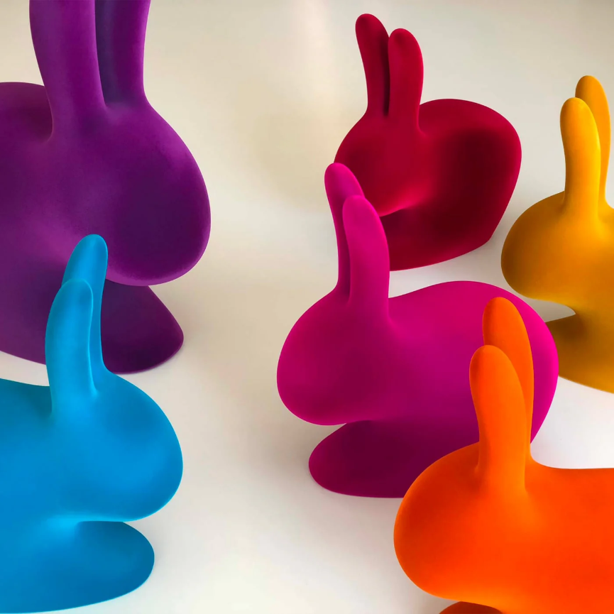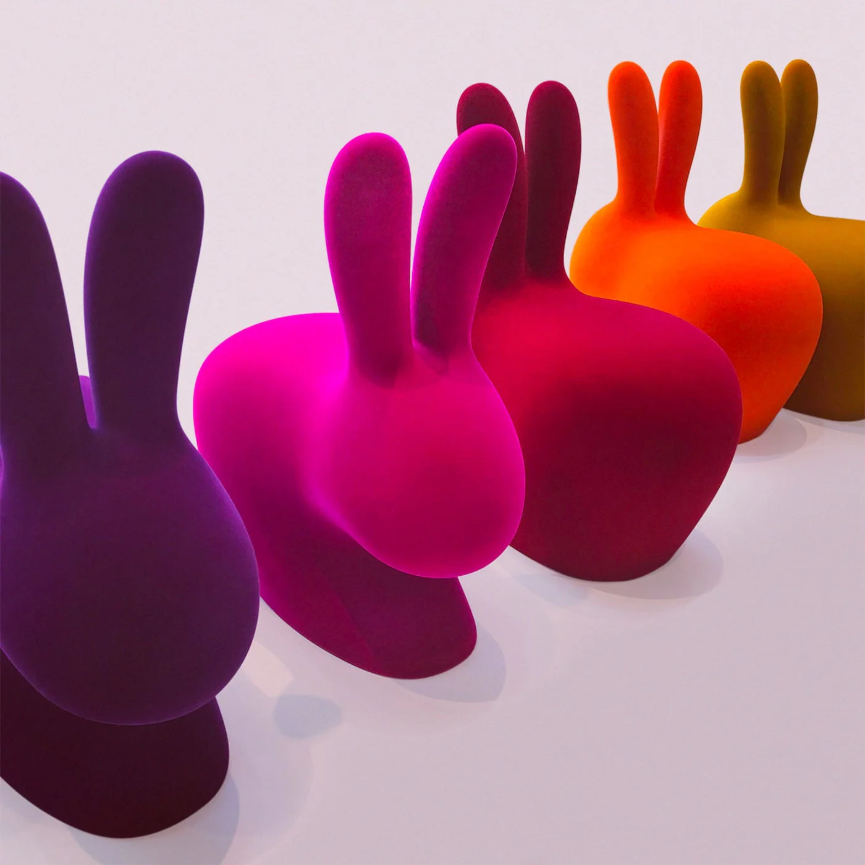La Sedia Rabbit Velvet Baby di Qeeboo, disegnata da Stefano Giovannoni, è la versione più morbida e coccolosa della celebre Rabbit Chair.