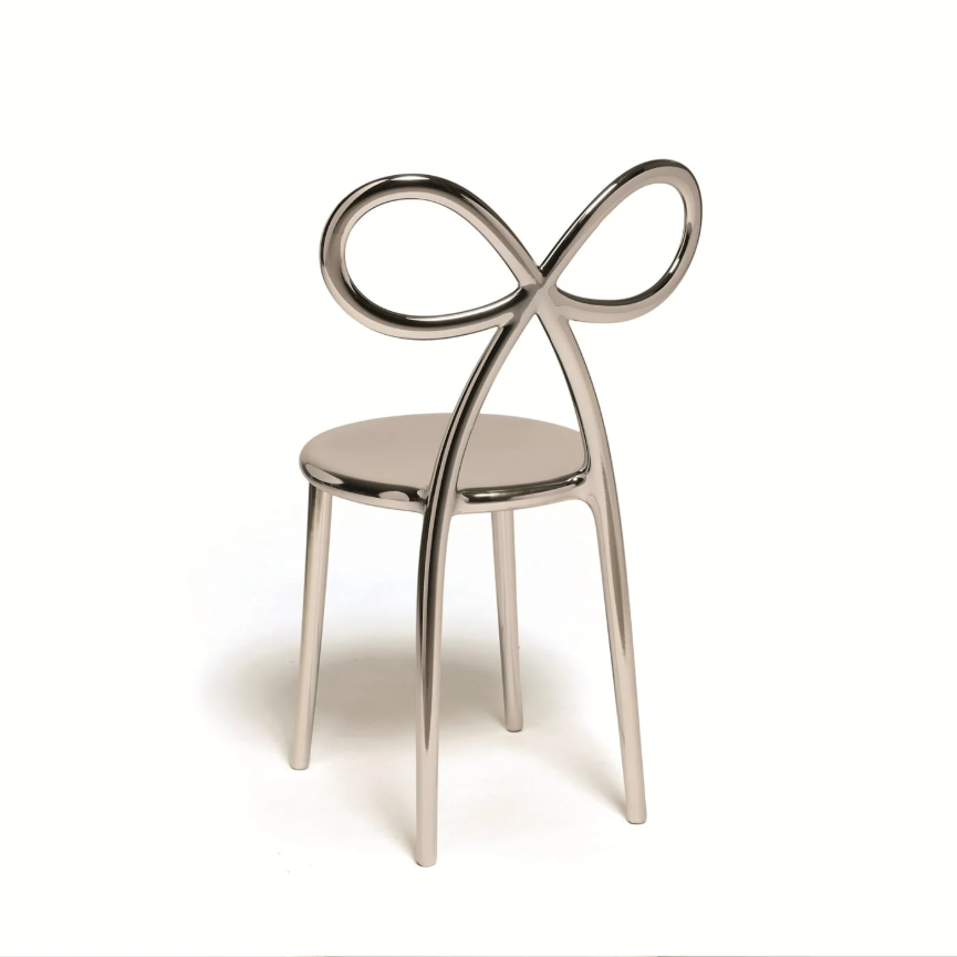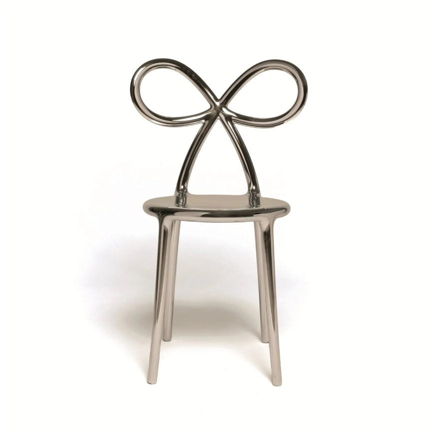 La Sedia Ribbon Metal di Qeeboo, disegnata da Nika Zupanc, è l’emblema della femminilità nel design contemporaneo. L’iconico nastro posteriore, simbolo romantico e teatrale, caratterizza questa seduta trasformandola in un vero oggetto decorativo.