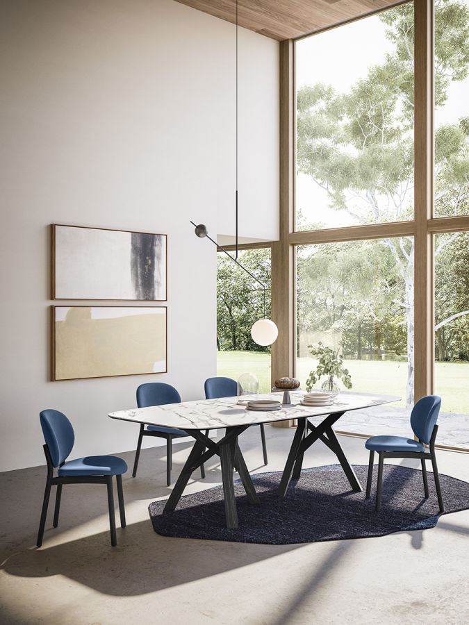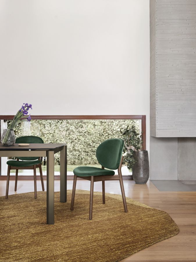 La seduta dalle forme morbide e aggraziate è pensata per offrire un comfort accogliente ed è rivestita in varie categorie di tessuto, permettendo un’ampia personalizzazione estetica. La struttura in legno massello, dal look leggero e raffinato, dona solidità e calore materico, valorizzando l’eleganza complessiva della sedia moderna Inès.