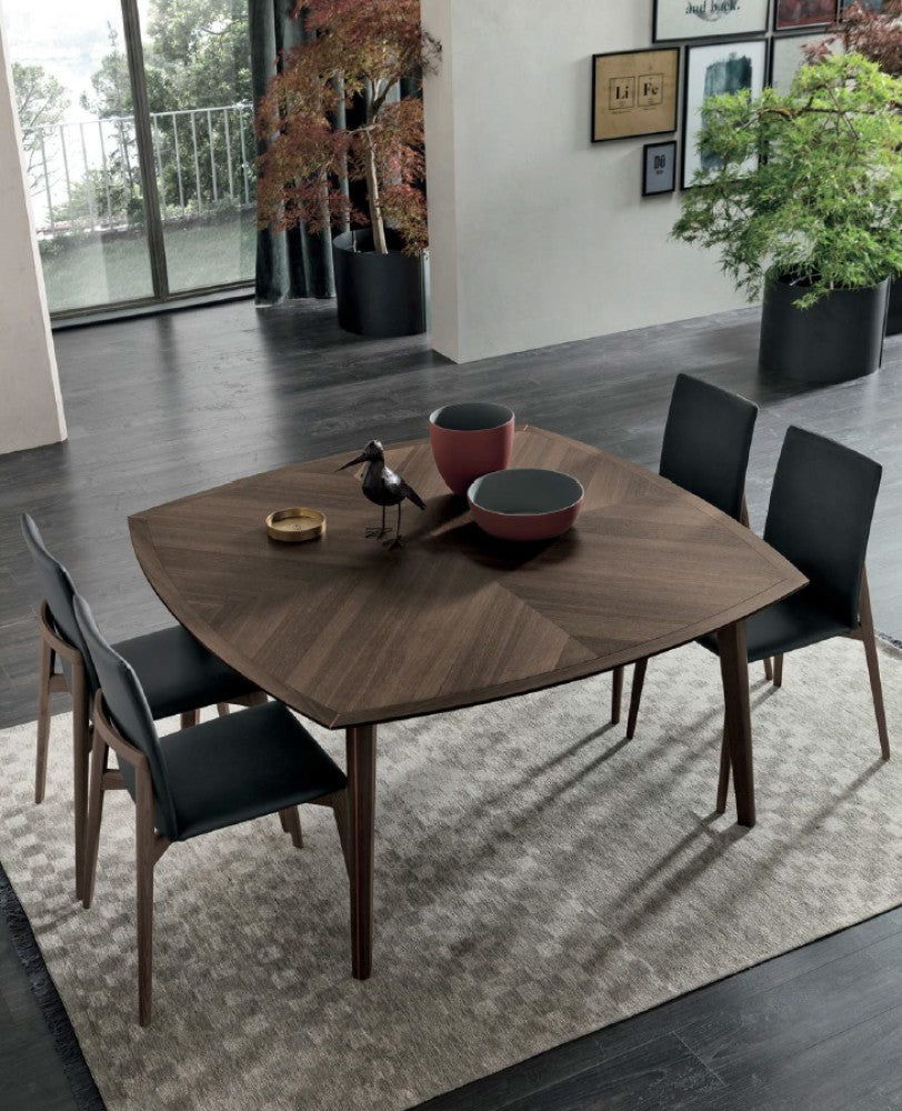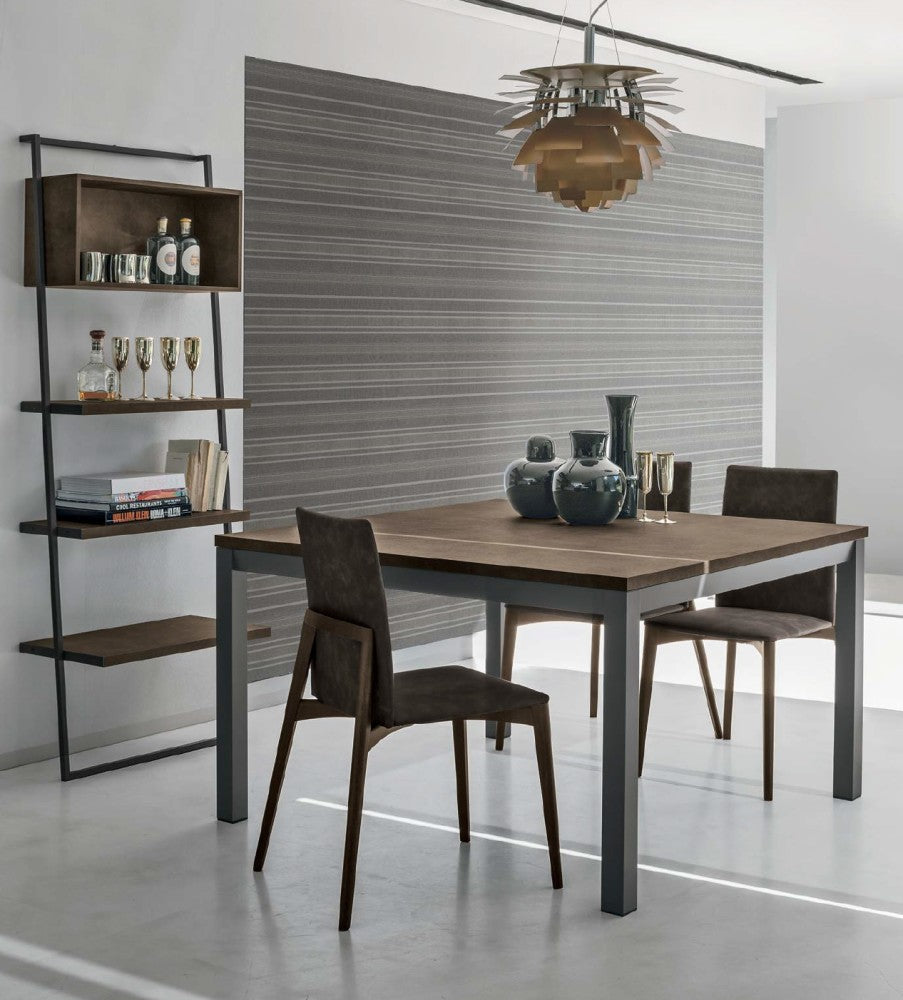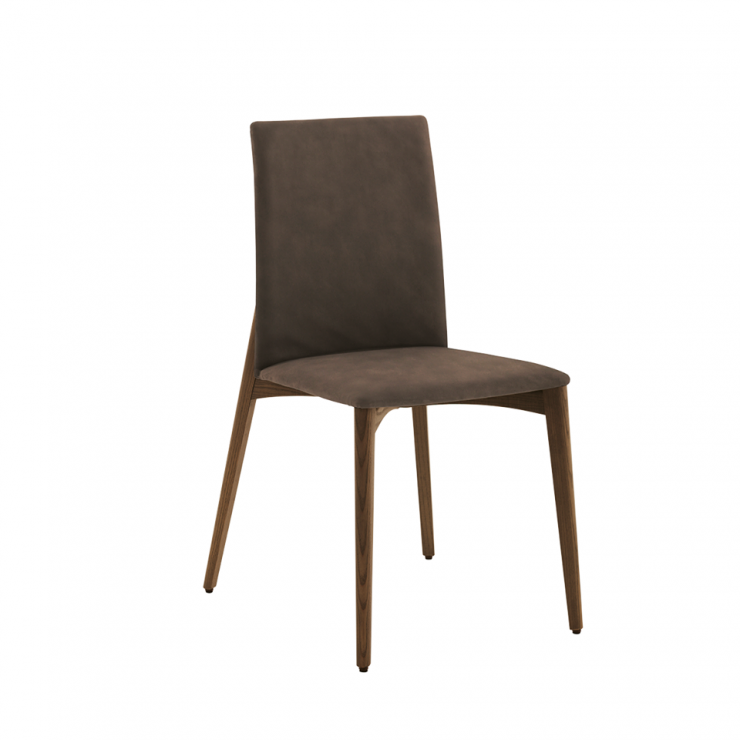 La struttura a quattro gambe in legno massello di frassino è disponibile in numerose tonalità laccate a poro aperto o nella pregiata essenza del rovere (sabbia, moka o carbone), mentre la seduta e lo schienale imbottiti possono essere rivestiti in pelle o ecopelle, materiali di alta qualità proposti in una ricca gamma di finiture eleganti e attuali.