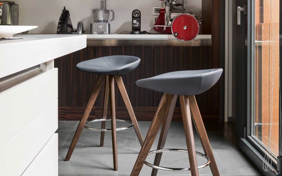 I poggiapiedi cromati completano il design aggiungendo un dettaglio luminoso ed elegante, oltre a garantire un comfort ottimale durante l’utilizzo. Grazie al suo equilibrio tra materiali, comfort ed estetica, lo sgabello Palm Calligaris è ideale per cucine moderne, isole, banconi snack e ambienti contract.