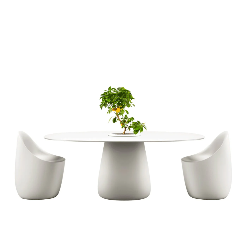Il tavolo Cobble, disegnato da Elisa Giovannoni, unisce funzionalità e design scultoreo in un’unica soluzione sorprendente. La sua base centrale accoglie un pratico secchiello integrato, perfetto per ospitare piante decorative oppure ghiaccio per mantenere fresche le bottiglie durante aperitivi e momenti conviviali.