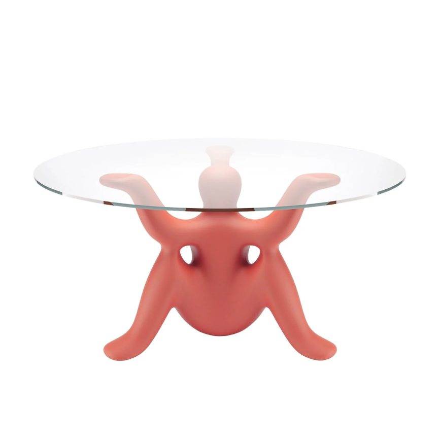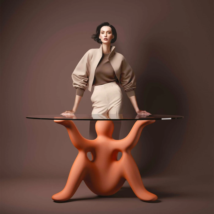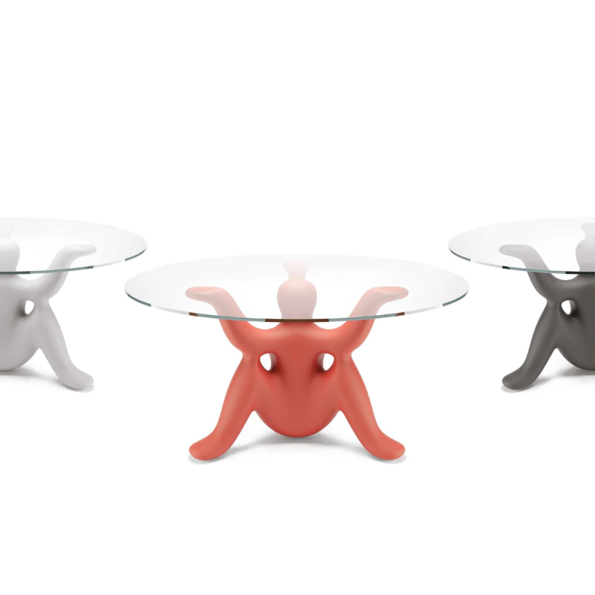 Ispirati a una famiglia di “geni” con tre gambe e tre braccia, questi personaggi sorreggono un ampio piano in vetro, diventando veri e propri guardiani del benessere domestico.