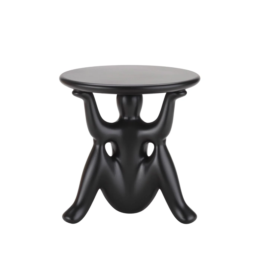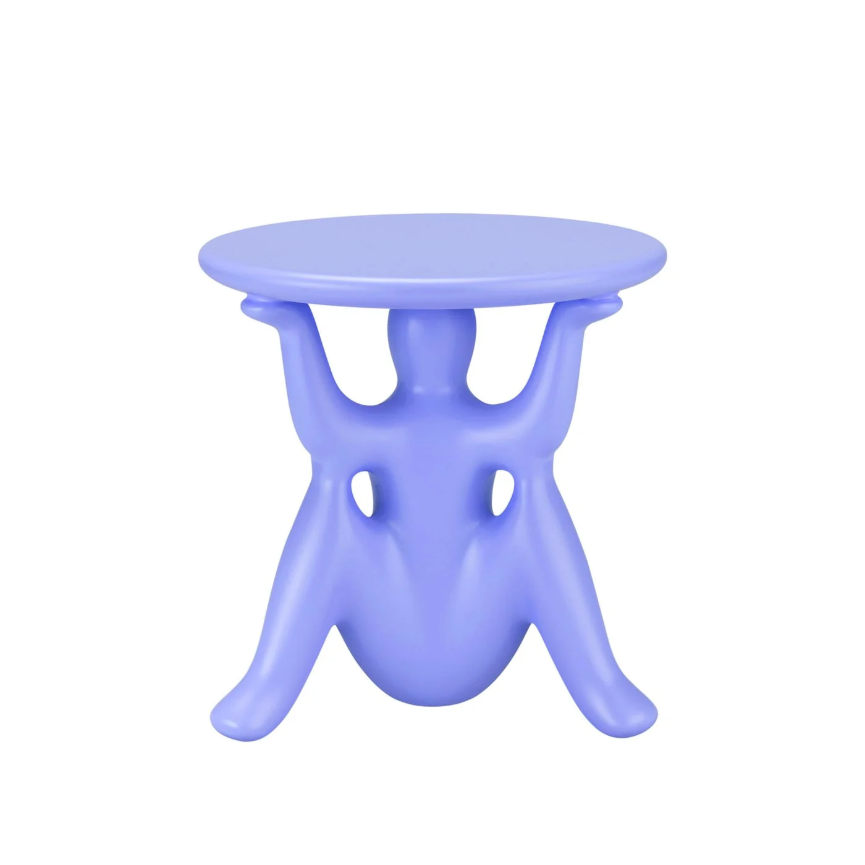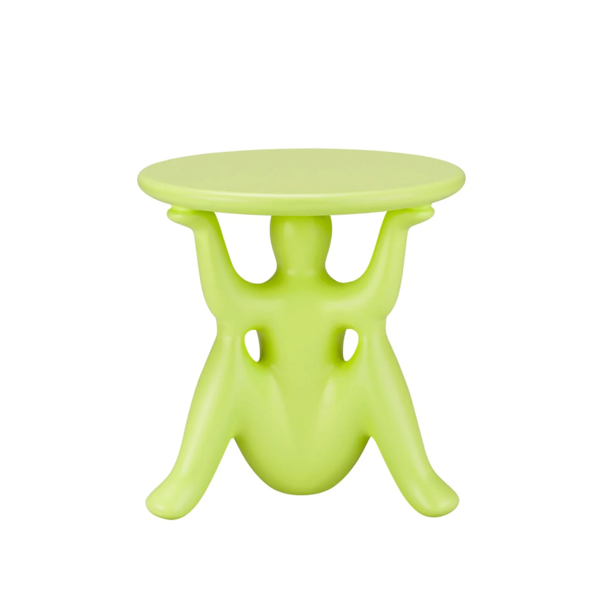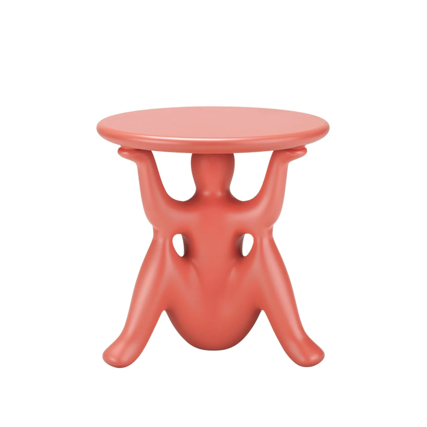Il tavolino presenta una struttura scultorea stampata in un unico pezzo in polietilene riciclabile, con un piano dal diametro di 46,5 cm. Divertente, iconico e immediatamente riconoscibile, è perfetto come tavolino da salotto, comodino, piano d’appoggio in ingresso o accento decorativo in spazi creativi e contemporanei.