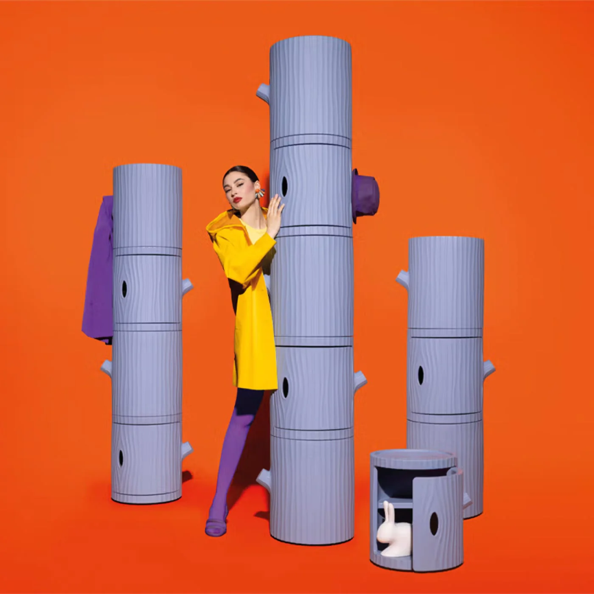 Tronco di Qeeboo, progettato dallo studio Furf, è un complemento multifunzionale ispirato alla forma di un tronco d’albero, reinterpretato in chiave pop e contemporanea.
