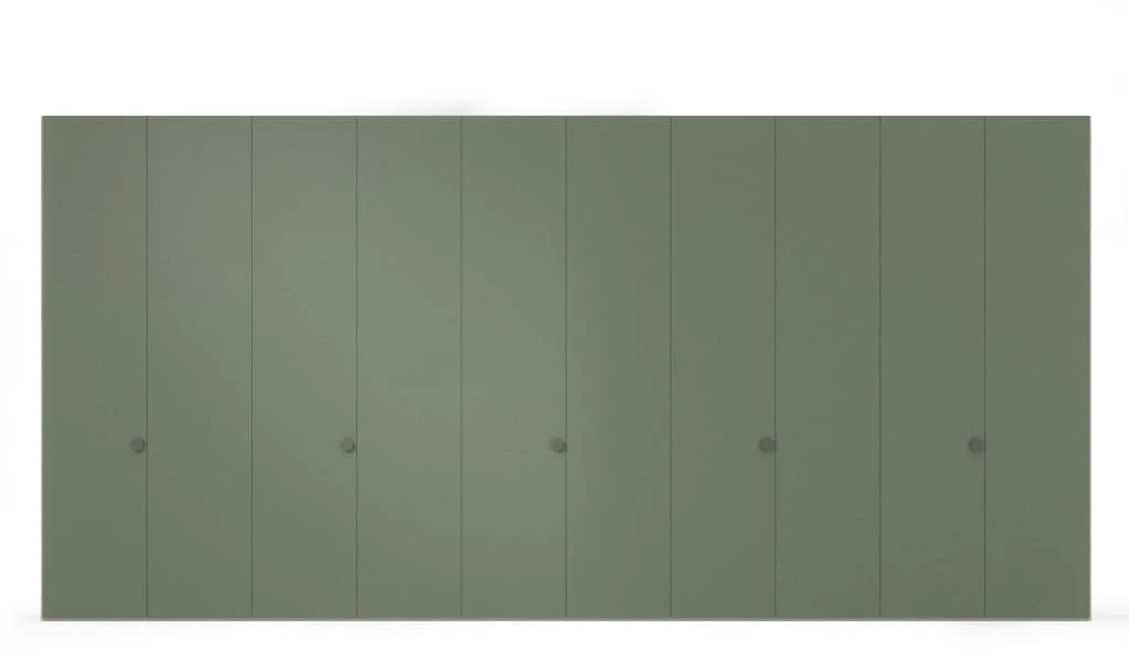 Nella versione Intono, l’armadio può essere tinteggiato come le pareti, diventando parte integrante dell’architettura e donando continuità visiva all’ambiente.