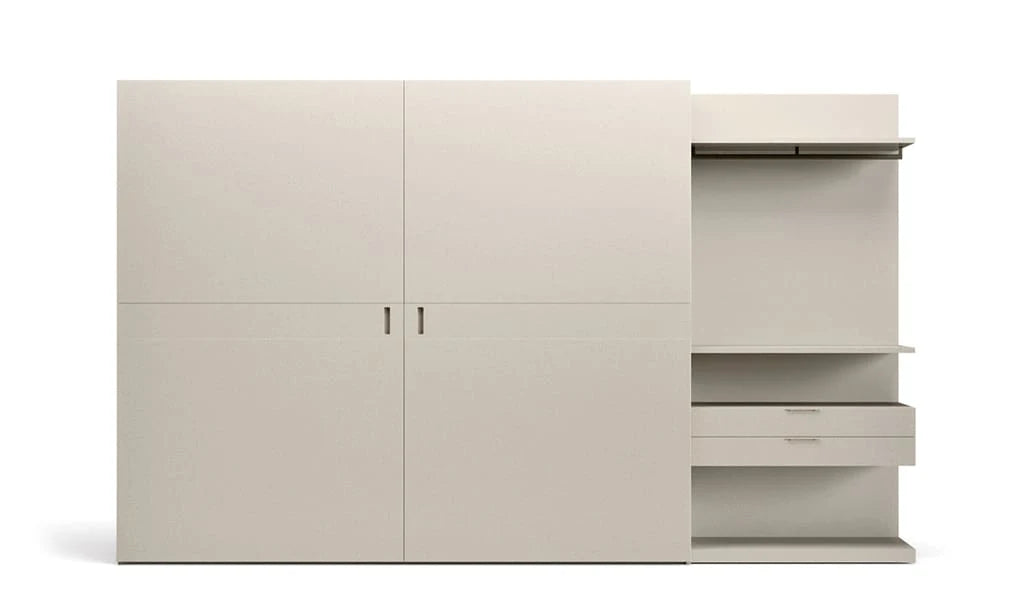 L’armadio Class complanare si distingue per la sua eleganza discreta e senza tempo, valorizzata da una maniglia tono su tono e da un’estetica perfettamente allineata alla struttura. Le ante complanari garantiscono un effetto visivo uniforme e raffinato, ideale per ambienti moderni e di gusto contemporaneo.