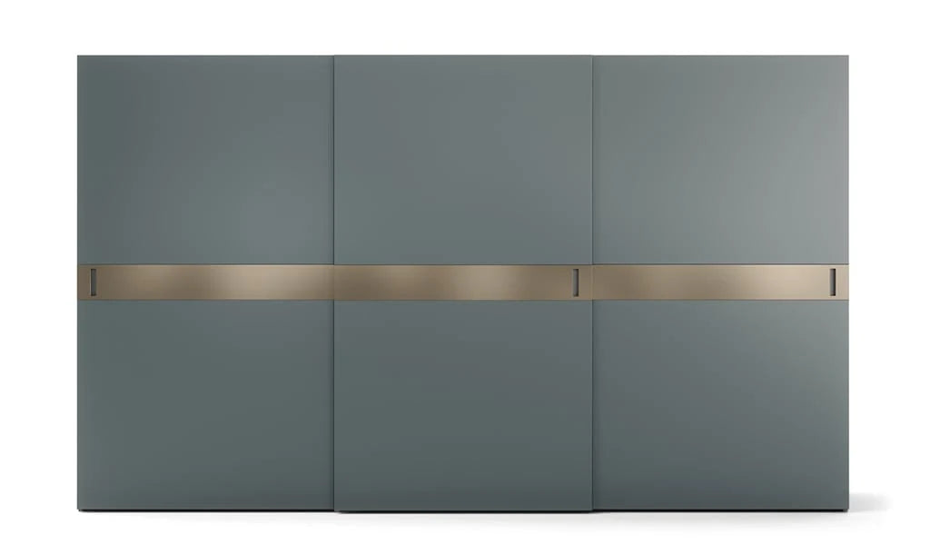 La presa scavata nell’inserto in legno massello è un dettaglio di autentico pregio, che aggiunge un tocco di calore naturale e valorizza la qualità dei materiali. Le ampie superfici scorrevoli ottimizzano lo spazio, rendendo l’armadio ideale per ambienti moderni dove estetica e funzionalità convivono in perfetto equilibrio.