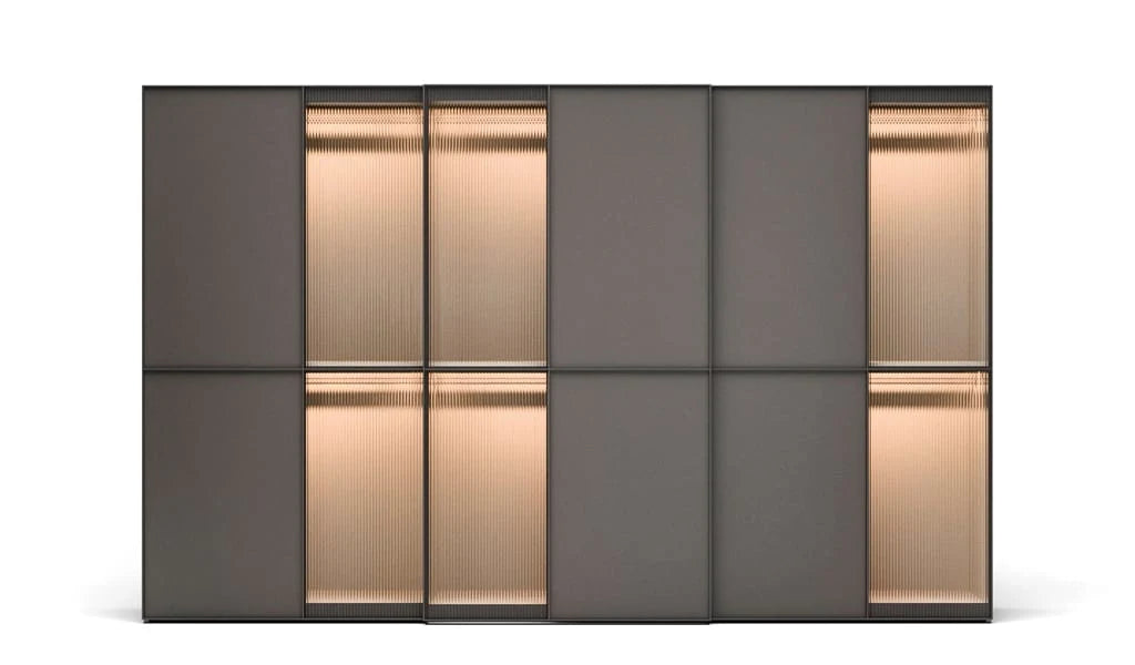 L’armadio Layer è un modello ad anta scorrevole che unisce design moderno e funzionalità impeccabile. Il telaio in metallo racchiude ante in vetro cannettato o fumé, creando un raffinato gioco di trasparenze e riflessi che dona profondità e leggerezza visiva all’ambiente.