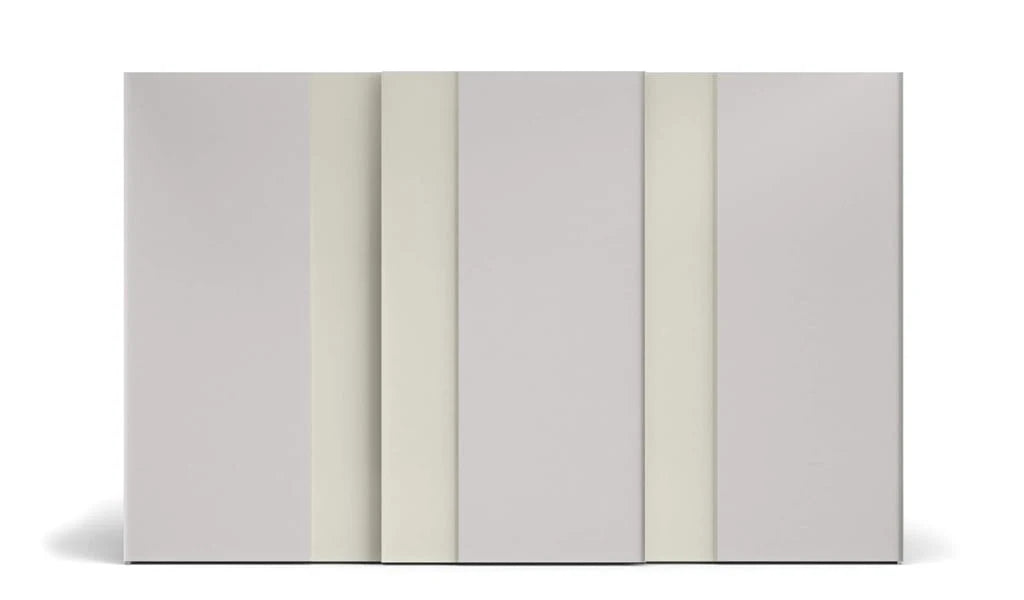 L’armadio Offset con ante scorrevoli interpreta il design moderno con linee pulite e proporzioni equilibrate. I pannelli dell’anta possono essere realizzati in finiture diverse, mentre l’inserto centrale, disponibile anche in specchio, aggiunge profondità e luminosità all’ambiente.
