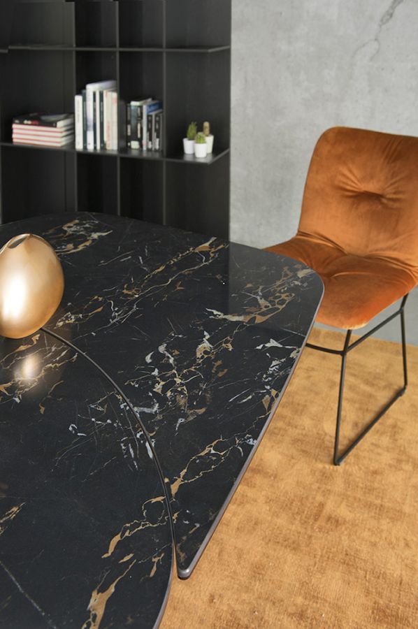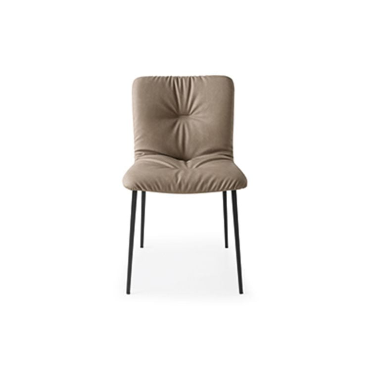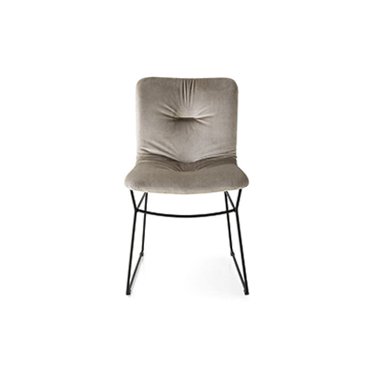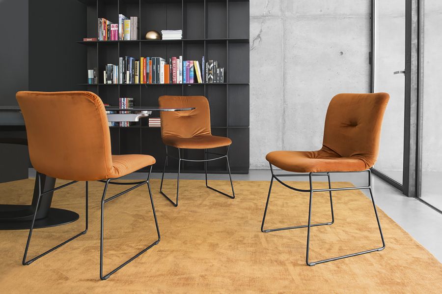 Il modello è proposto con base in metallo, disponibile a slitta oppure con quattro gambe, soluzioni che conferiscono un segno moderno e assicurano stabilità e funzionalità in diversi contesti d’uso. La scocca rivestita è caratterizzata da una trapuntatura irregolare a effetto morbido, dettaglio distintivo che valorizza l’estetica della sedia moderna Annie e garantisce una seduta accogliente.