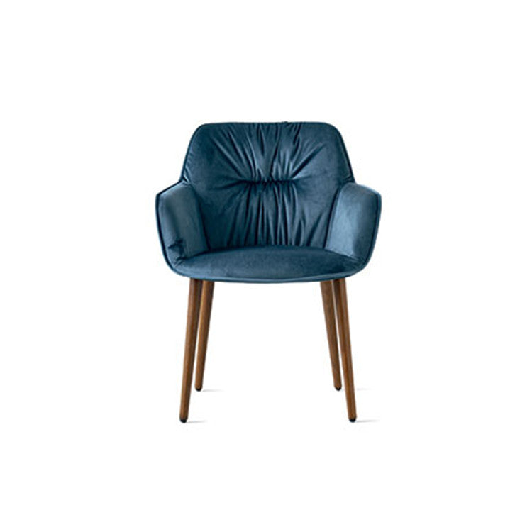 La seduta dai volumi generosi e confortevoli è progettata per offrire un’elevata sensazione di accoglienza e relax ed è rivestita in tessuto, valorizzando la morbidezza delle forme. La base in legno massello conferisce solidità, stabilità e un calore materico che bilancia perfettamente il linguaggio formale contemporaneo della sedia moderna Cocoon.