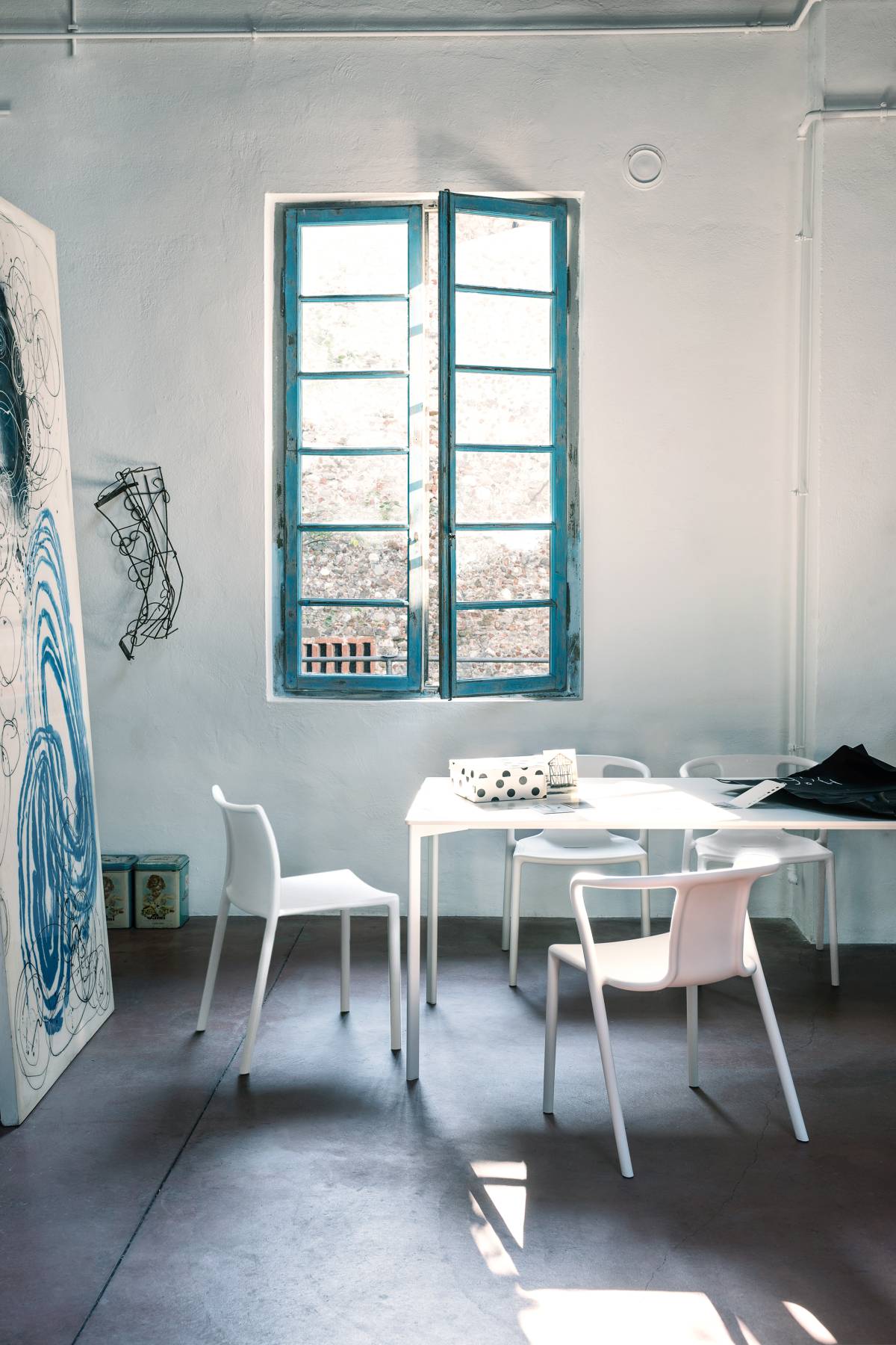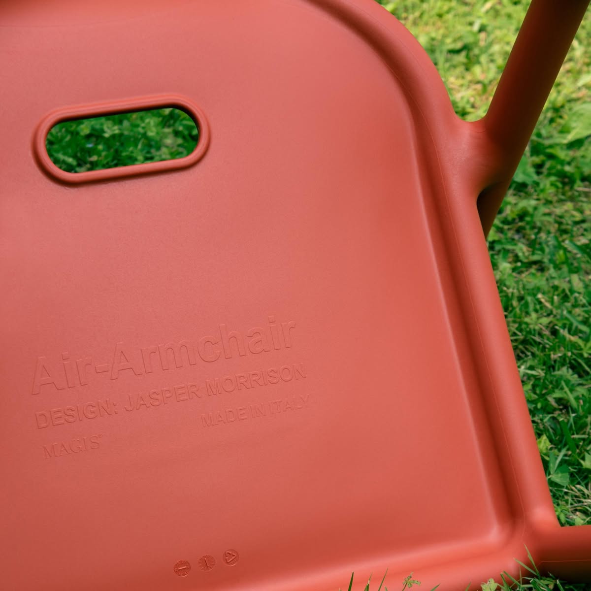 Realizzata in polipropilene caricato di fibra di vetro, Air-Armchair è prodotta con tecnologia air-moulding, che consente di ottenere una struttura solida ma estremamente leggera. La resistenza del materiale la rende adatta anche per l’uso esterno, garantendo durabilità e stabilità nel tempo anche in presenza di agenti atmosferici.