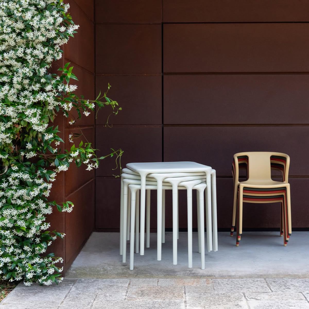 Dotata di braccioli integrati per un maggiore comfort di seduta, questa sedia è impilabile fino a 10 pezzi, caratteristica che la rende ideale per spazi contract, ristoranti, terrazze, ambienti hospitality e contesti collettivi dove è fondamentale ottimizzare gli spazi. È disponibile su richiesta il carrello portasedie Magis, utile per la movimentazione e lo stoccaggio.
