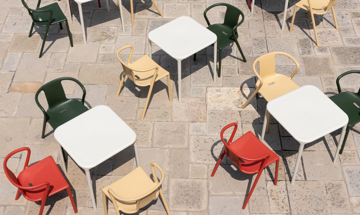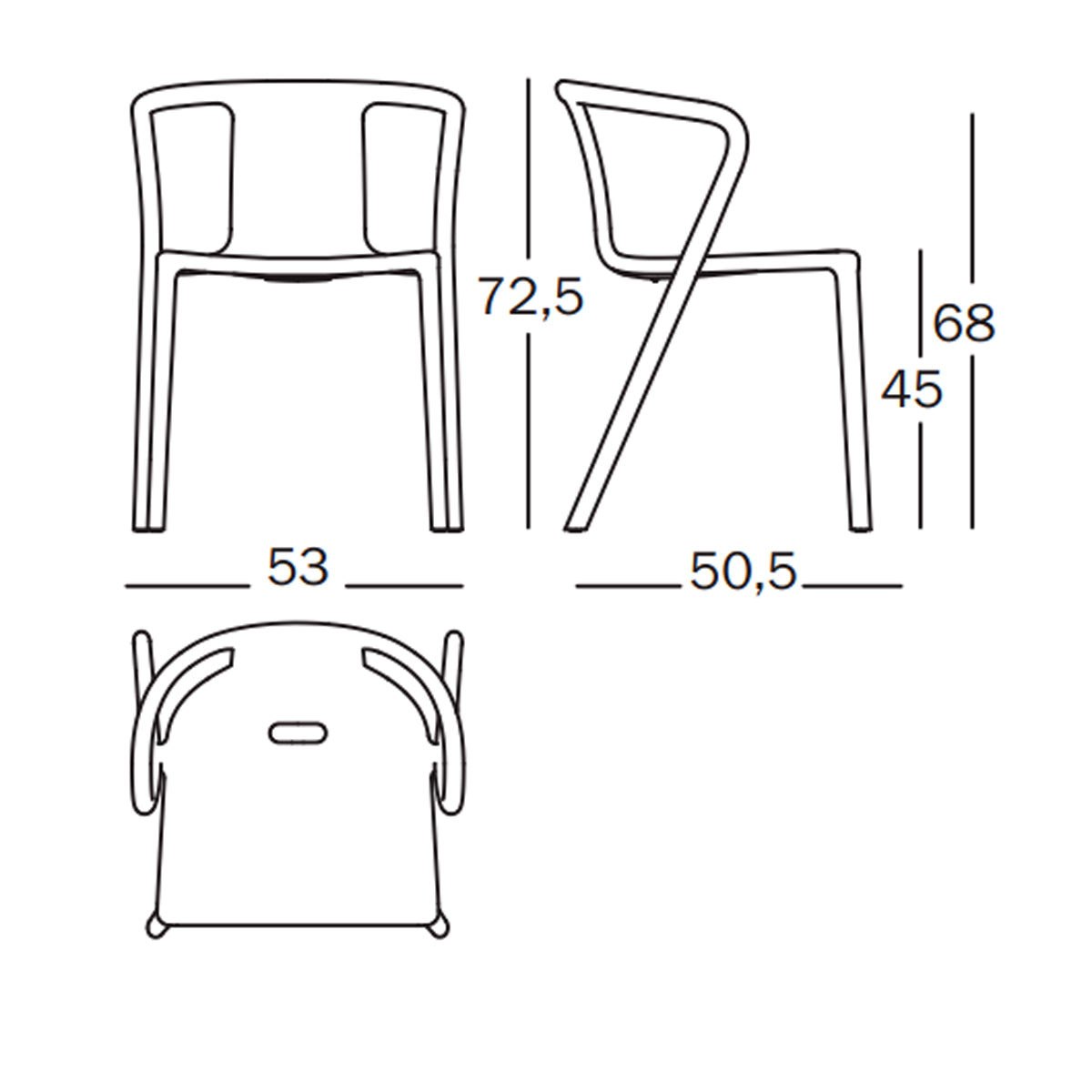 Air-Armchair è la scelta ideale per chi cerca una sedia di design in polipropilene fiber glass, con braccioli, impilabile, resistente e adatta sia ad ambienti indoor che outdoor.
