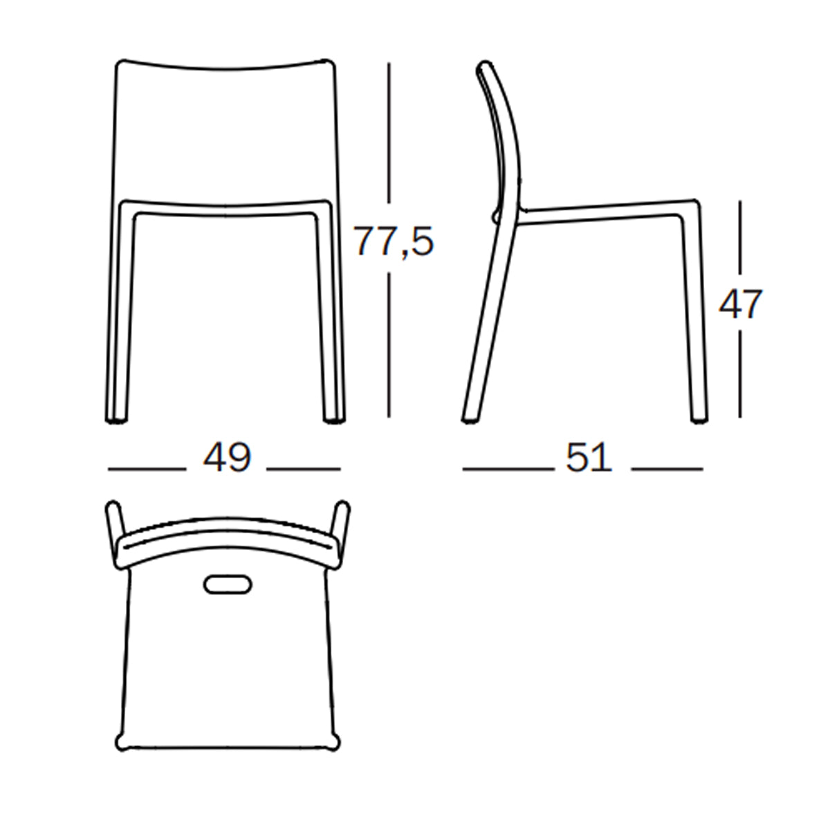 Il progetto integra alette di aggancio che facilitano l’allineamento e migliorano la stabilità durante l’impilaggio, rendendo la sedia particolarmente indicata per contesti contract, spazi pubblici, ristoranti, terrazze e ambienti collettivi. La possibilità di impilare fino a 10 sedie ottimizza la gestione degli spazi e lo stoccaggio.