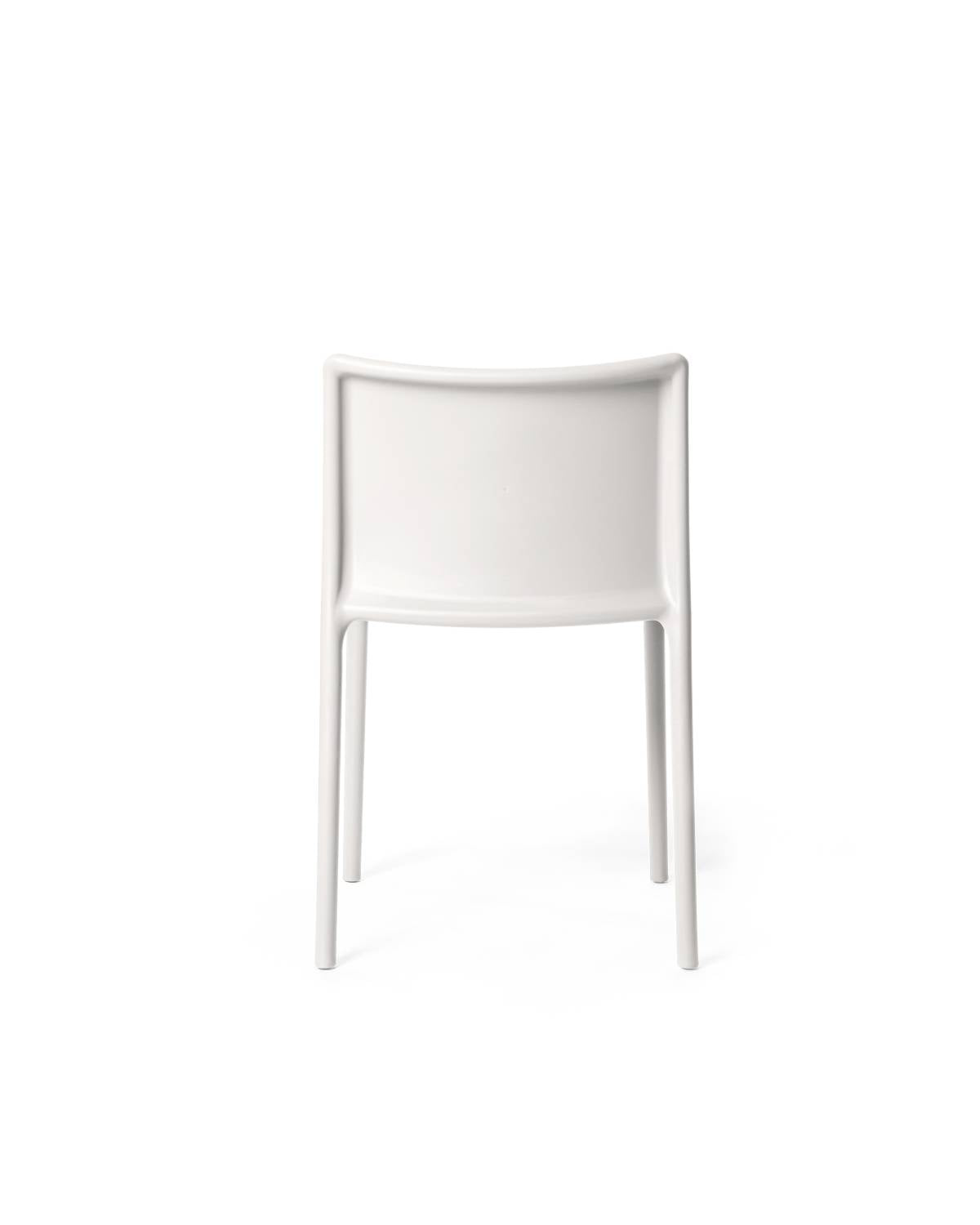 Realizzata in polipropilene caricato di fibra di vetro, la sedia è prodotta con tecnologia air-moulding, che consente di ottenere una struttura solida ma estremamente leggera. Questo processo garantisce elevate prestazioni meccaniche e una lunga durata nel tempo, rendendo Air-Chair adatta anche per l’uso esterno e resistente agli agenti atmosferici.