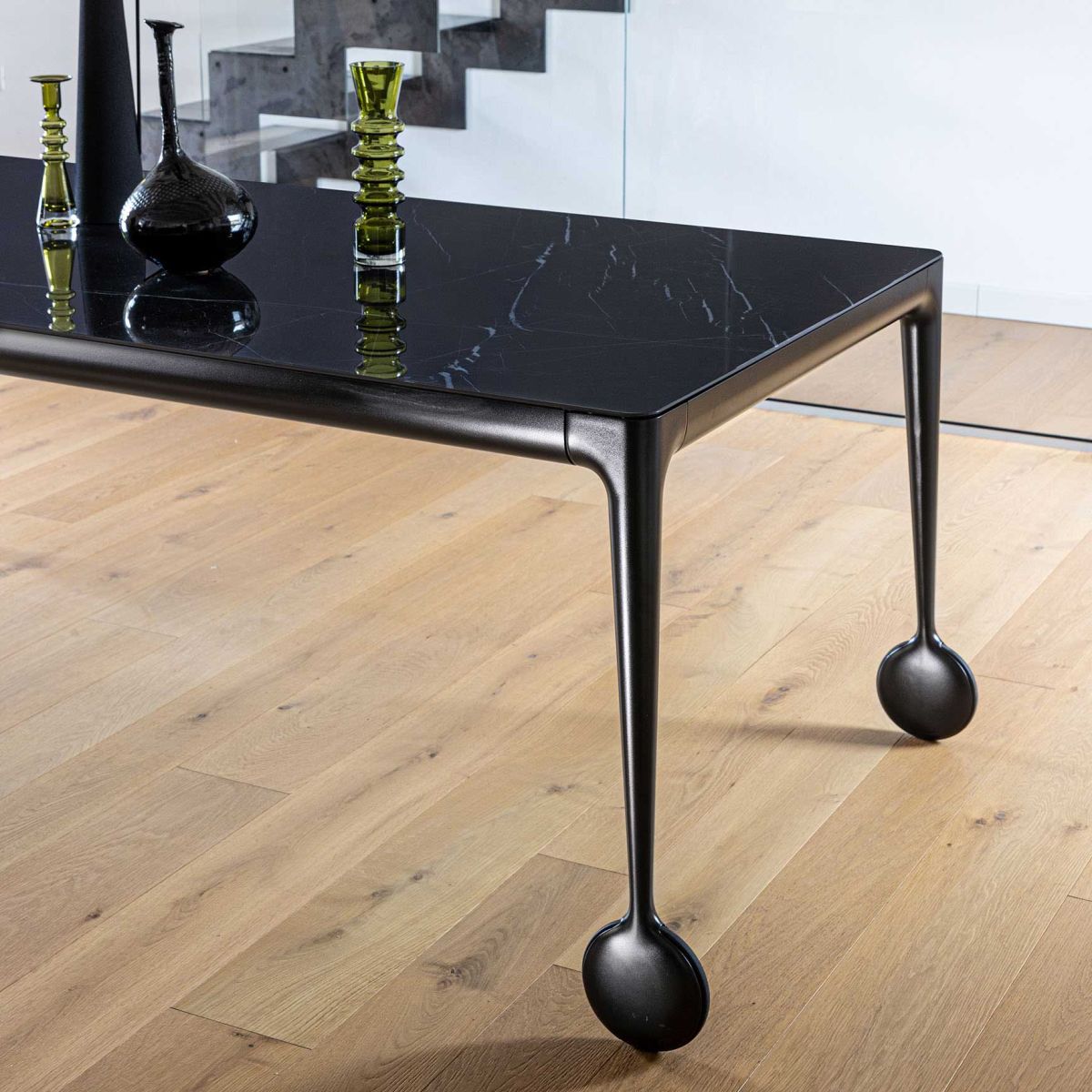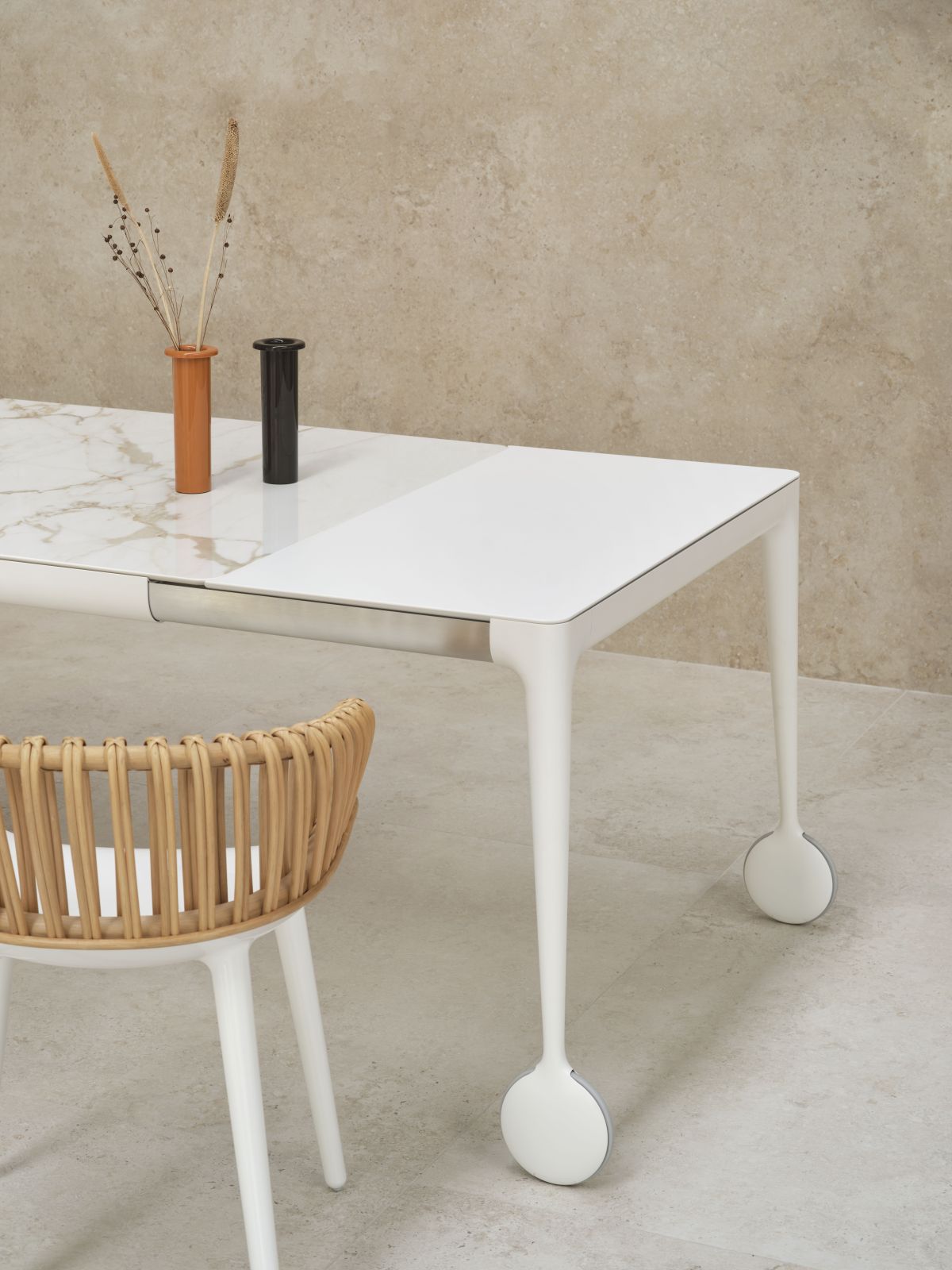 Le prolunghe in MDF verniciato, coordinate alle finiture del piano, permettono di estendere il tavolo mantenendo coerenza estetica e funzionale.