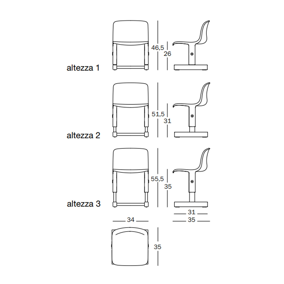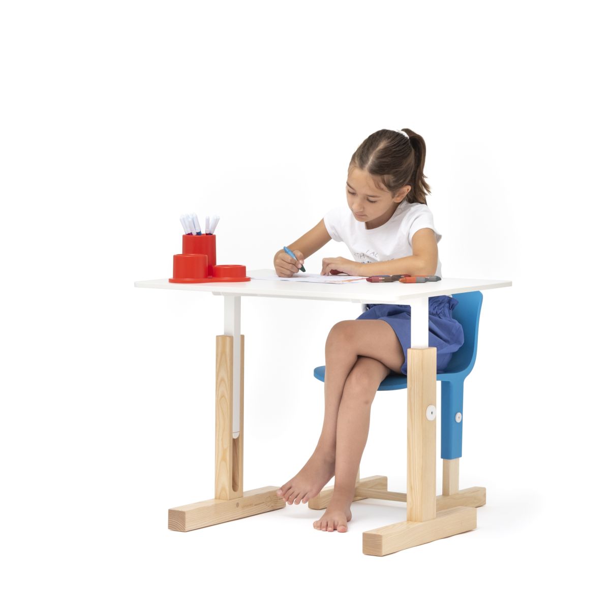 Elemento centrale del progetto è la regolazione in altezza, che consente di adattare la seduta alla crescita del bambino e a diverse attività, come gioco, disegno, studio o lettura. Questa caratteristica rende Little Big una soluzione duratura nel tempo, ideale per camerette, spazi educativi, scuole, asili e ambienti creativi.