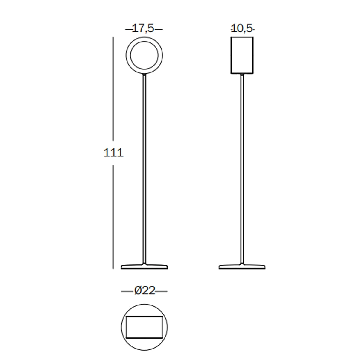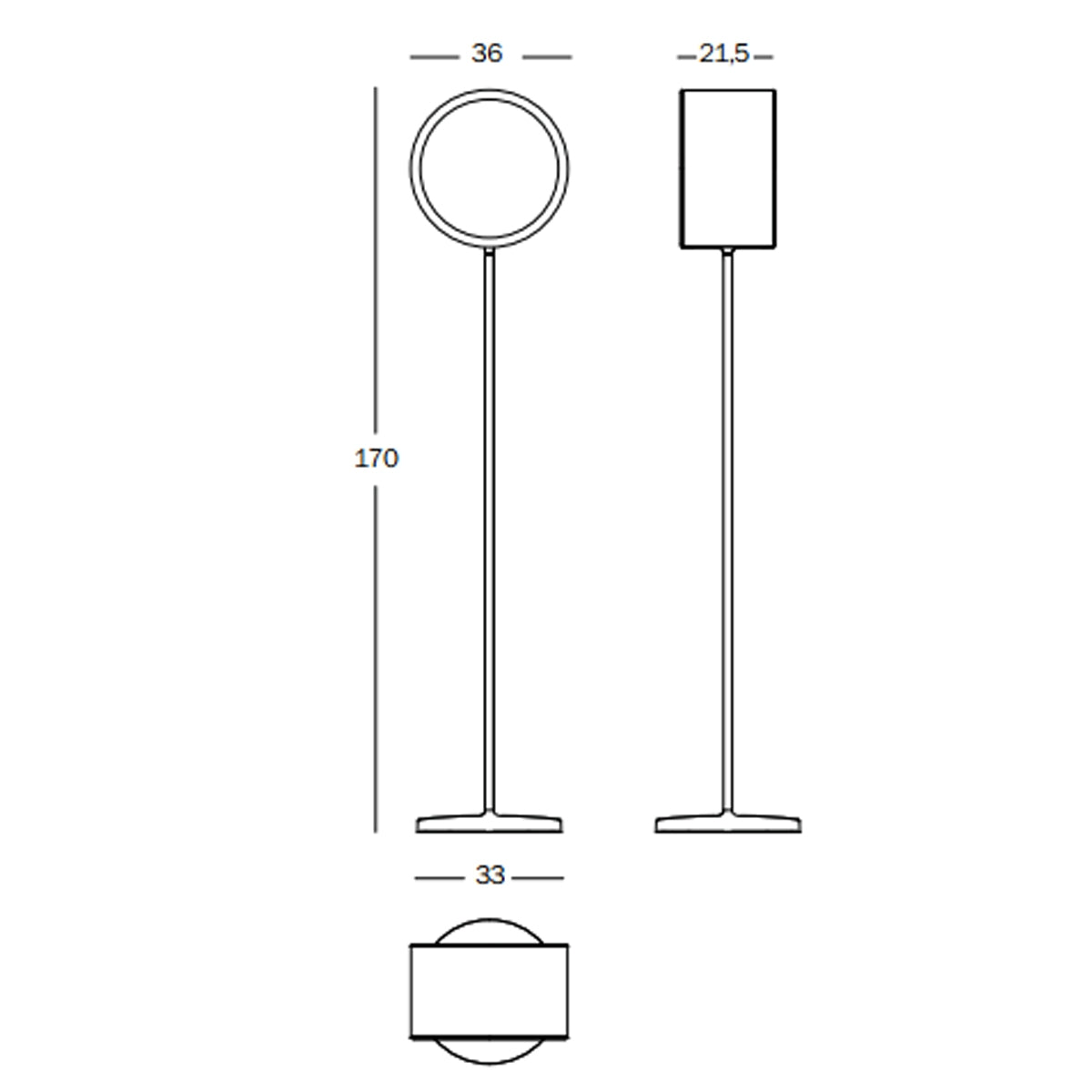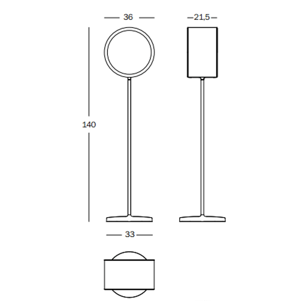 La struttura della lampada è composta da un corpo in ABS verniciato, che integra una scheda multi-LED con diffusore in PMMA, garantendo una distribuzione della luce uniforme e confortevole. La base in pressofusione di alluminio verniciato assicura stabilità e solidità, mentre lo stelo in tubo di acciaio verniciato conferisce slancio verticale ed eleganza all’insieme.