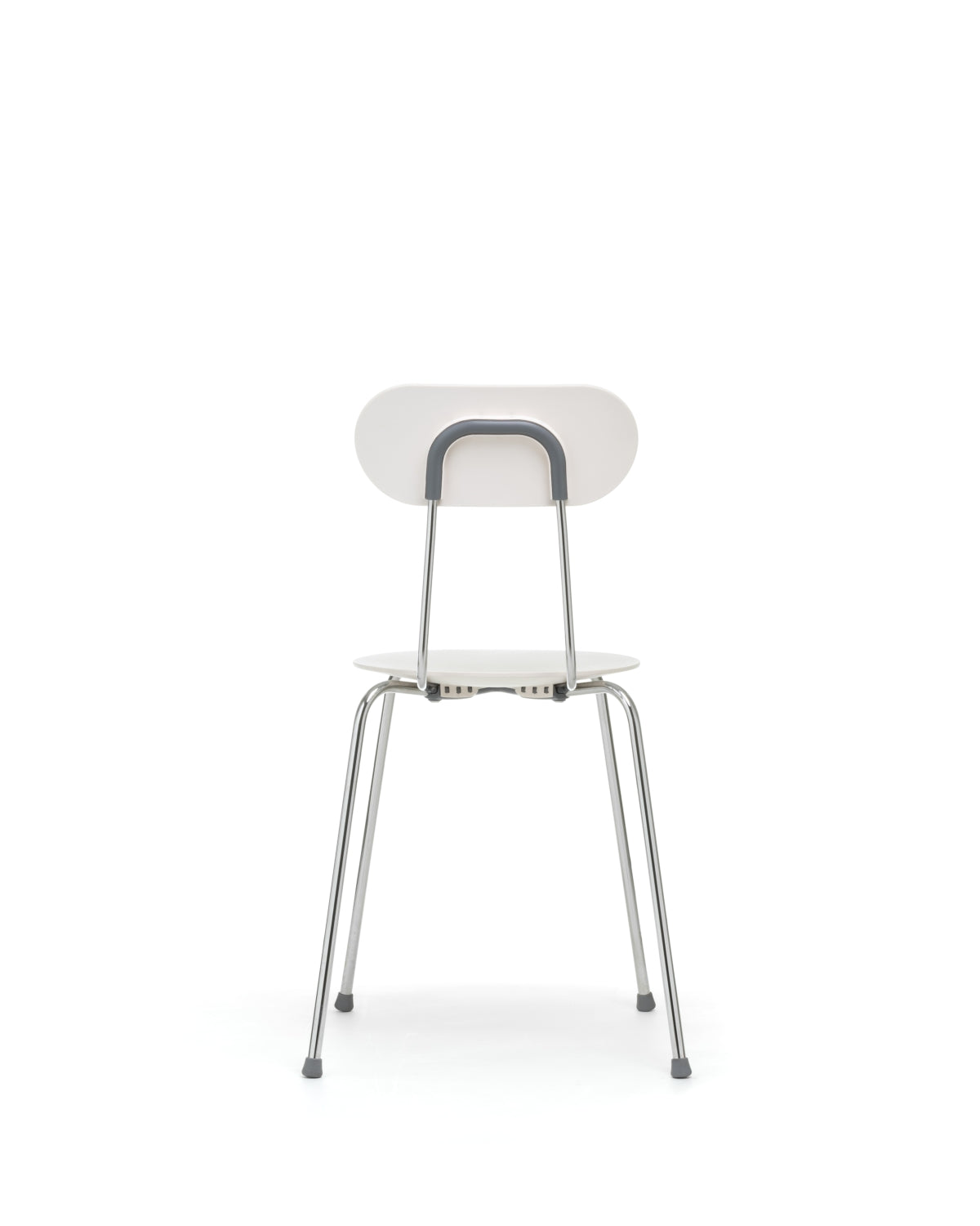 La struttura è realizzata in tubo di acciaio, disponibile in versione cromata o verniciata, solida e visivamente leggera al tempo stesso. Sedile e schienale in polipropilene, stampati a iniezione standard, garantiscono resistenza all’usura, comfort e facilità di manutenzione, rendendo la sedia adatta anche a utilizzi intensivi.