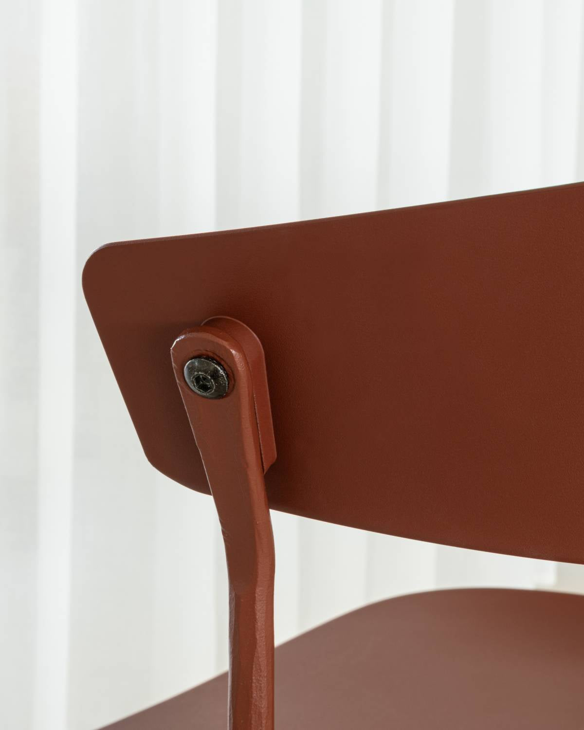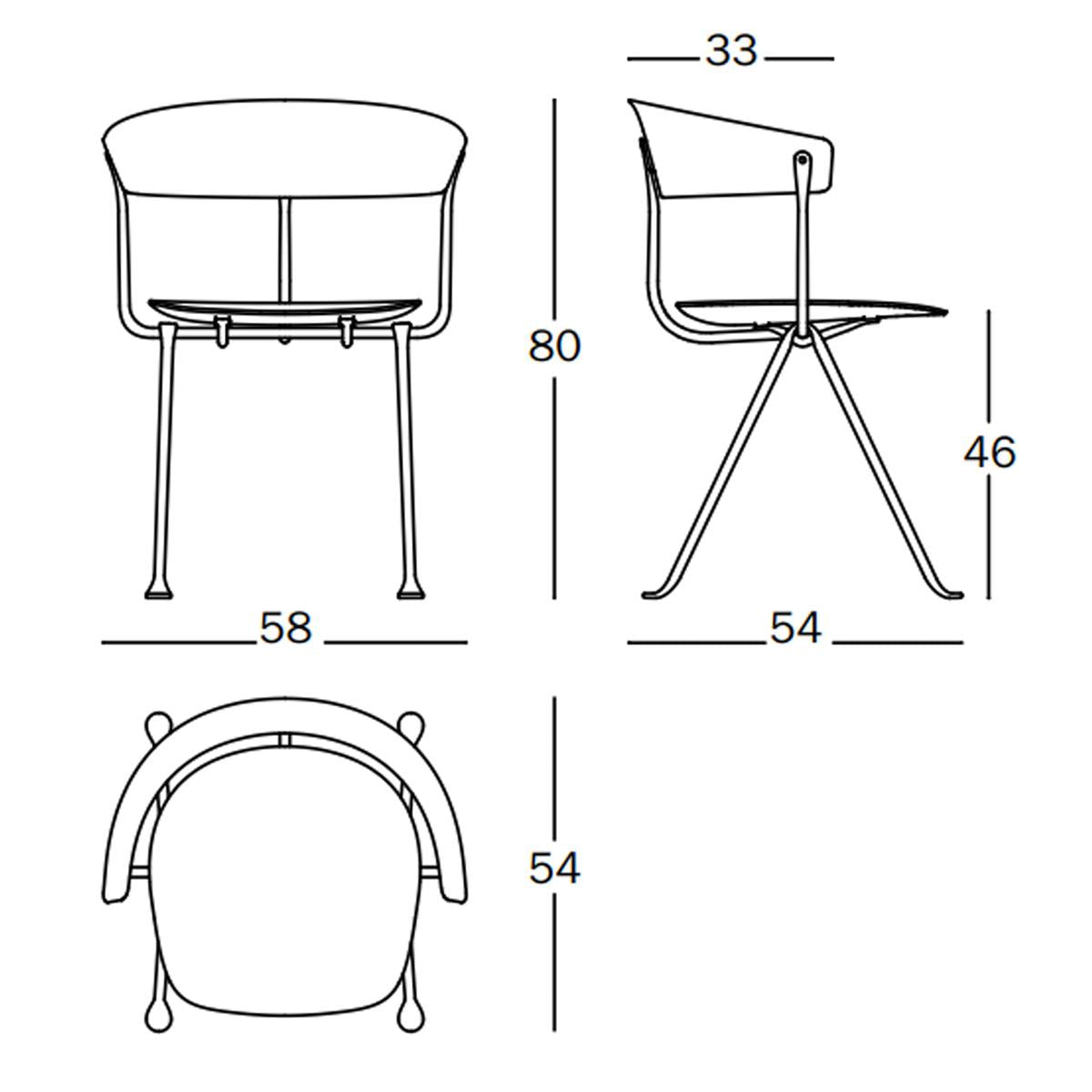 La struttura è realizzata in ferro forgiato, materiale che garantisce robustezza, stabilità e durata eccezionale. A seconda della versione, la sedia è sottoposta a trattamento di cataforesi con verniciatura a poliestere oppure a zincatura a caldo, assicurando un’elevata protezione contro la corrosione. Questo rende Officina adatta anche all’uso esterno, oltre che a contesti indoor.