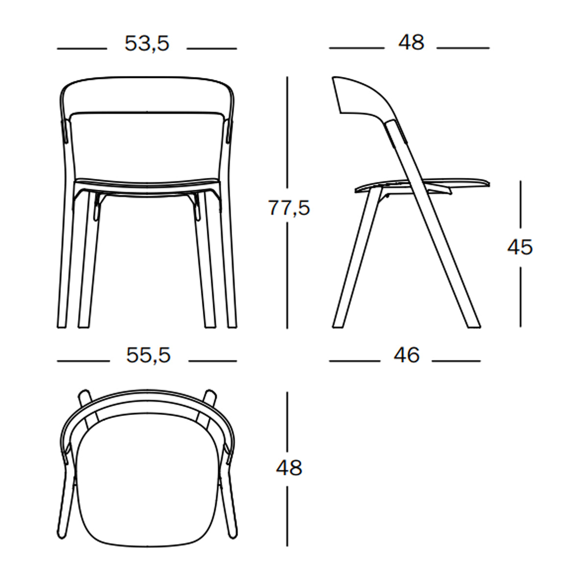 La sedia è impilabile fino a 4 unità, caratteristica che la rende ideale per ambienti contract, sale riunioni, ristoranti, spazi collettivi e contesti residenziali in cui è richiesta flessibilità d’uso. I feltrini in dotazione proteggono le superfici e migliorano la silenziosità nello spostamento. Per una gestione ancora più efficiente, è disponibile su richiesta il trolley portasedie Magis.