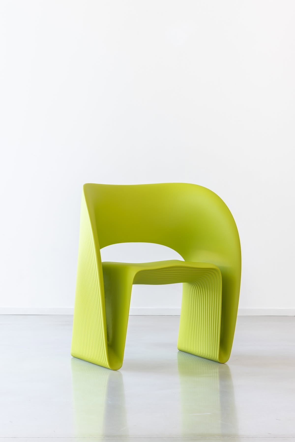 Raviolo Poltroncina è una poltroncina di design iconica firmata da Ron Arad per Magis, caratterizzata da una forma scultorea e immediatamente riconoscibile.