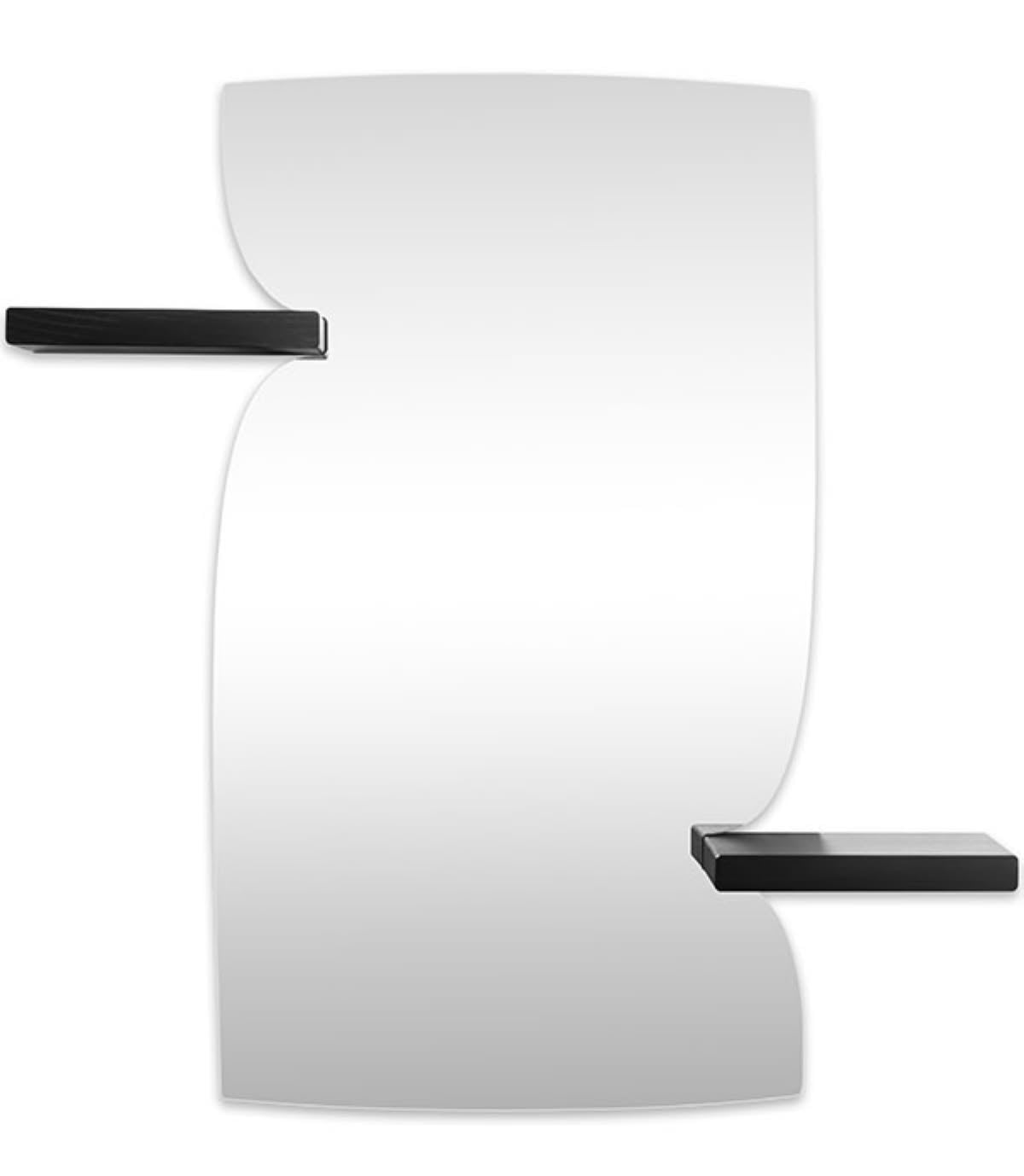 Specchio con ripiani in massello di frassino nero + vetro retropellicolato