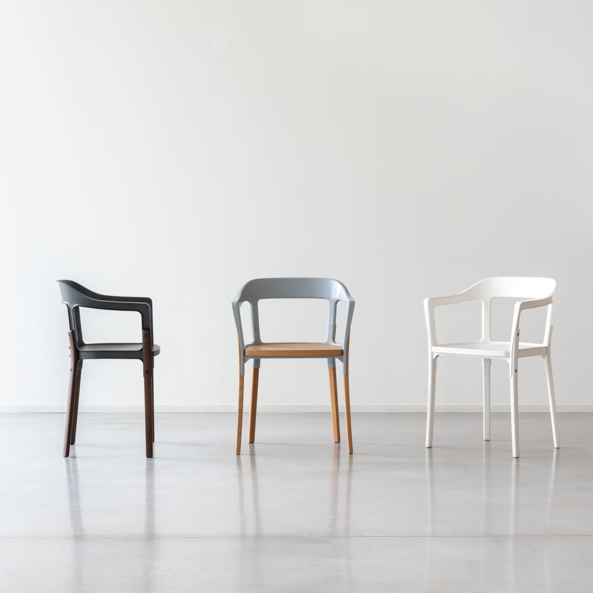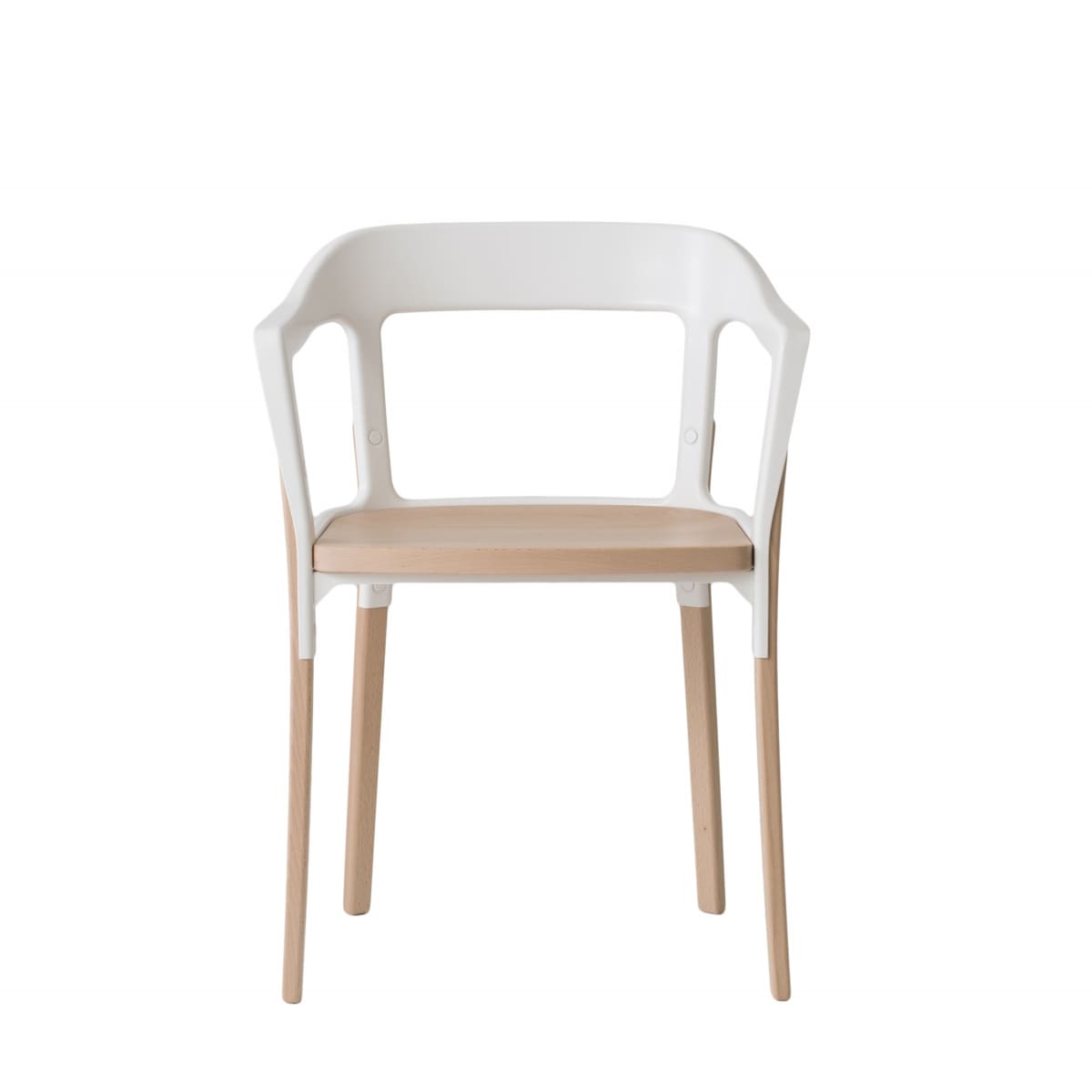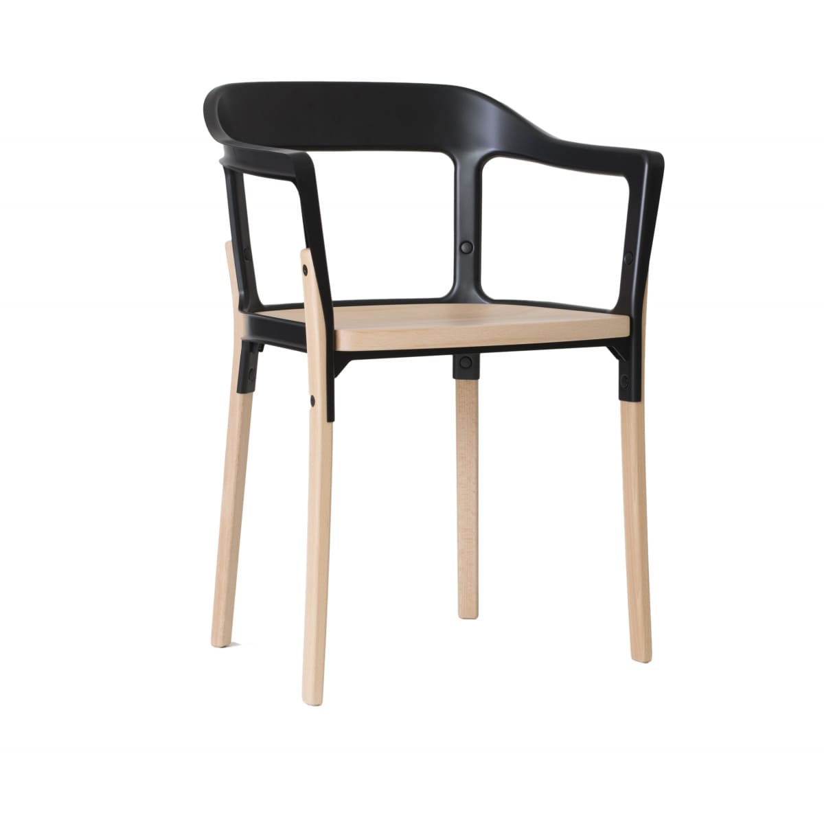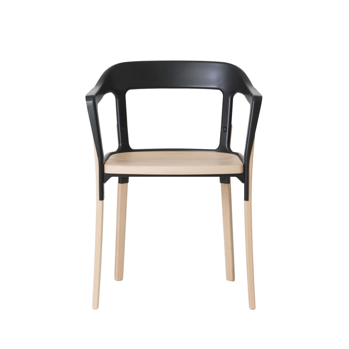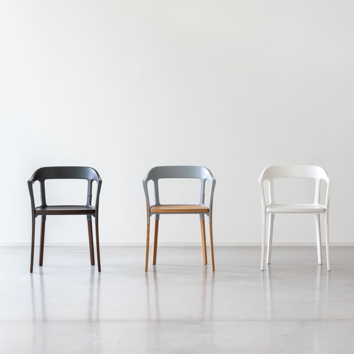 La Steelwood Chair con braccioli di Magis è una poltroncina di design che esprime un equilibrio impeccabile tra solidità costruttiva ed eleganza formale. Disegnata nel 2008 da Ronan & Erwan Bouroullec, rappresenta uno dei progetti più iconici del catalogo Magis, capace di fondere materiali tradizionali e industriali in un linguaggio contemporaneo.