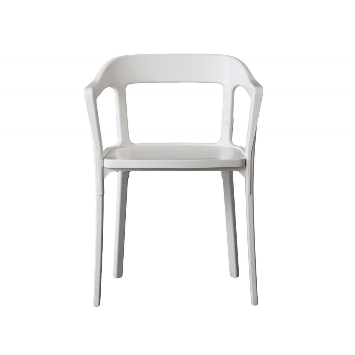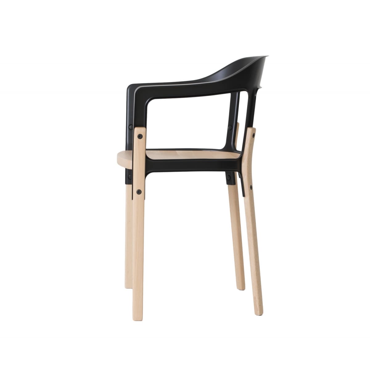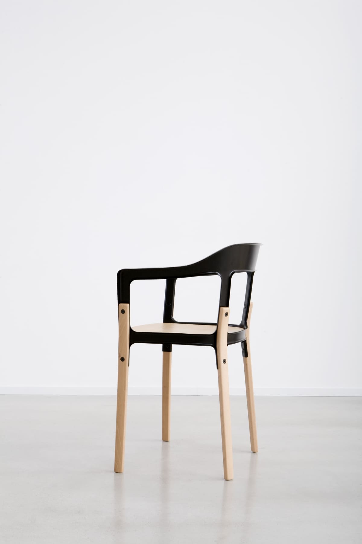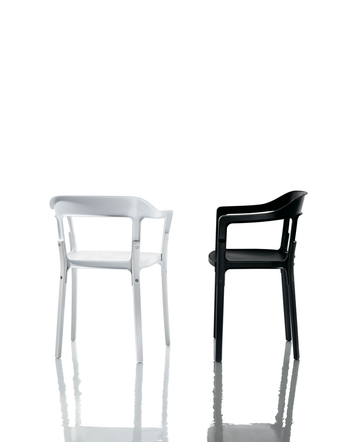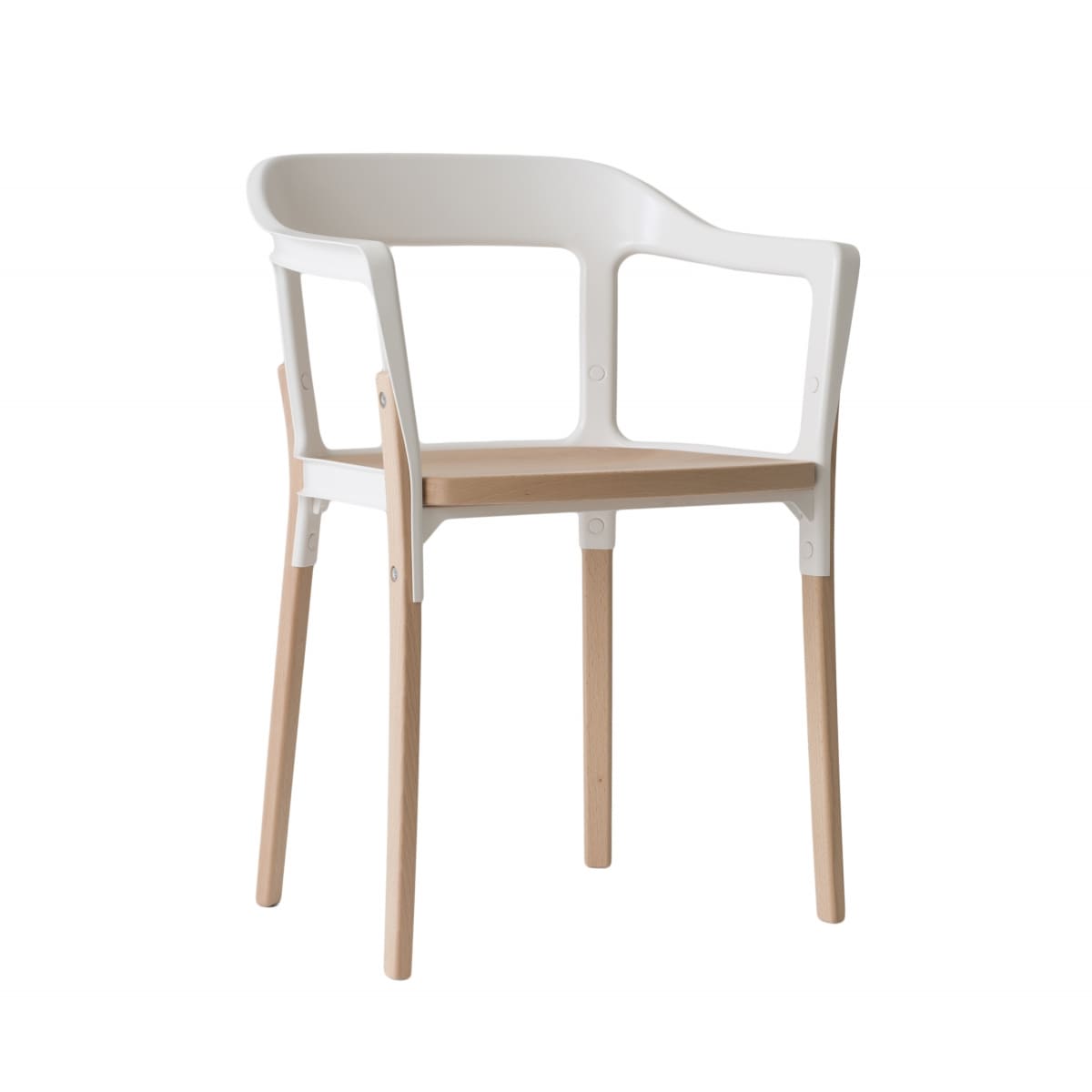 La Steelwood Chair con braccioli di Magis è una poltroncina di design che esprime un equilibrio impeccabile tra solidità costruttiva ed eleganza formale. Disegnata nel 2008 da Ronan & Erwan Bouroullec, rappresenta uno dei progetti più iconici del catalogo Magis, capace di fondere materiali tradizionali e industriali in un linguaggio contemporaneo.