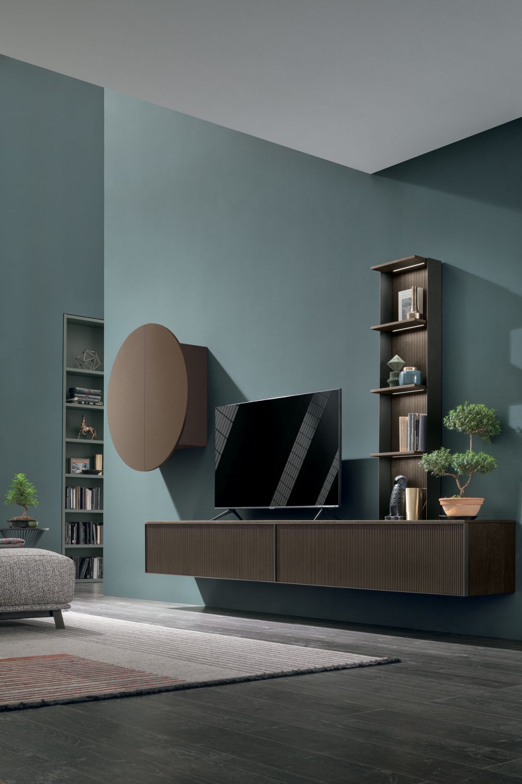 Un mix tra libreria, contenitore ed espositore, questa parete attrezzata rappresenta la perfetta sintesi tra design e funzionalità: ogni elemento è progettato per garantire ordine, praticità e continuità visiva.