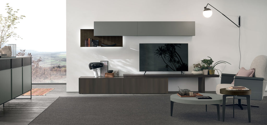 La Parete Attrezzata Atlante di Tomasella è una delle soluzioni più esclusive e versatili per arredare il soggiorno con stile e funzionalità. Grazie alla sua grande componibilità, si adatta perfettamente a spazi di ogni dimensione, offrendo una vasta gamma di configurazioni, finiture e accessori.